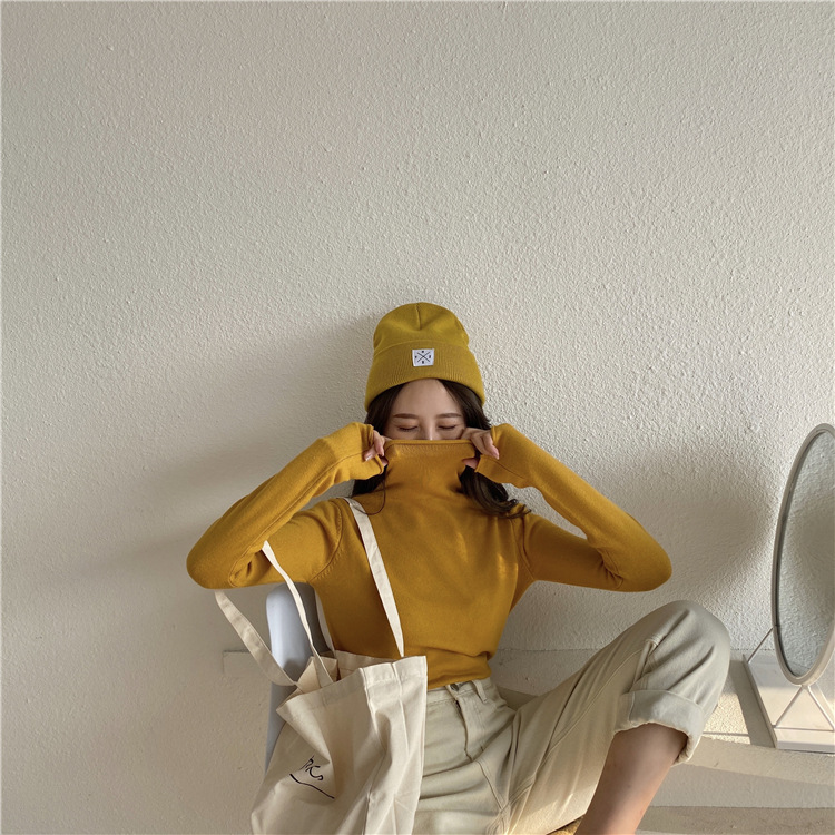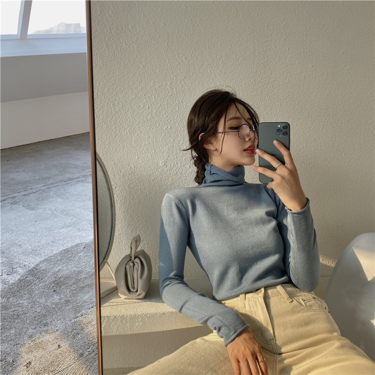 세련된 터틀넥 스웨터 한국 슬림 핏 슬리밍 바닥 스웨터 여성 긴 소매 탑 가을과 겨울스토어 가기