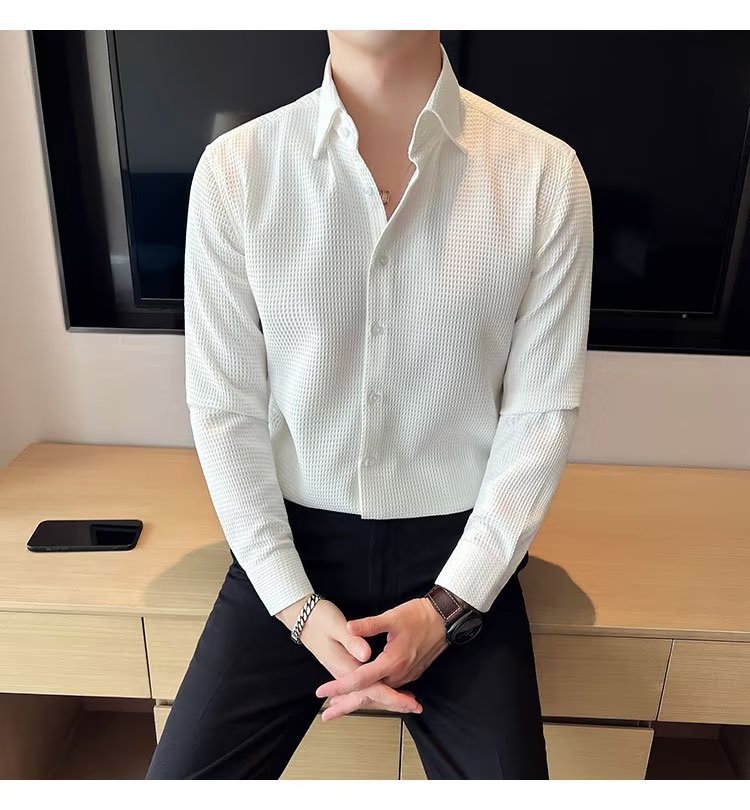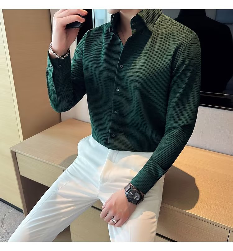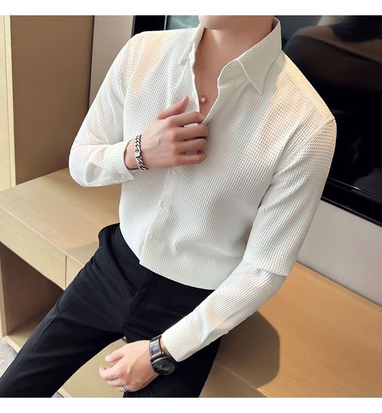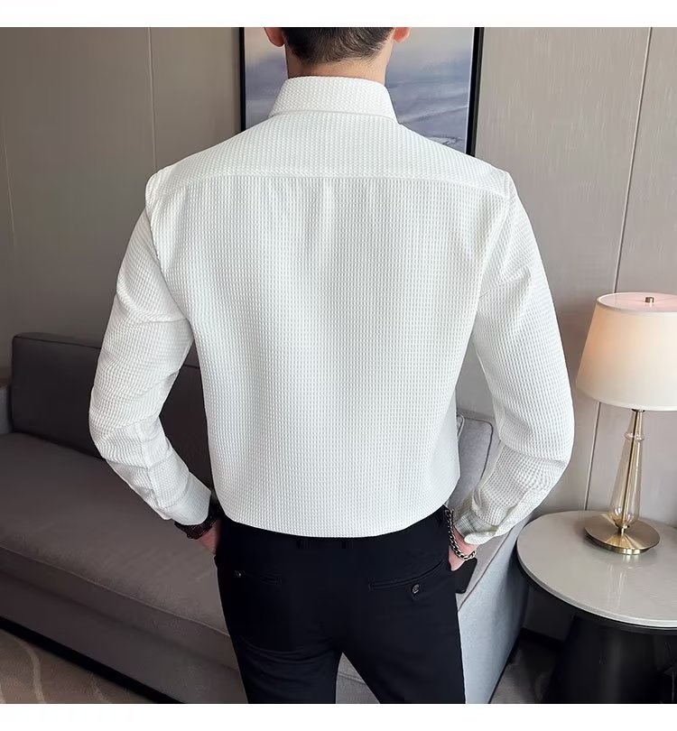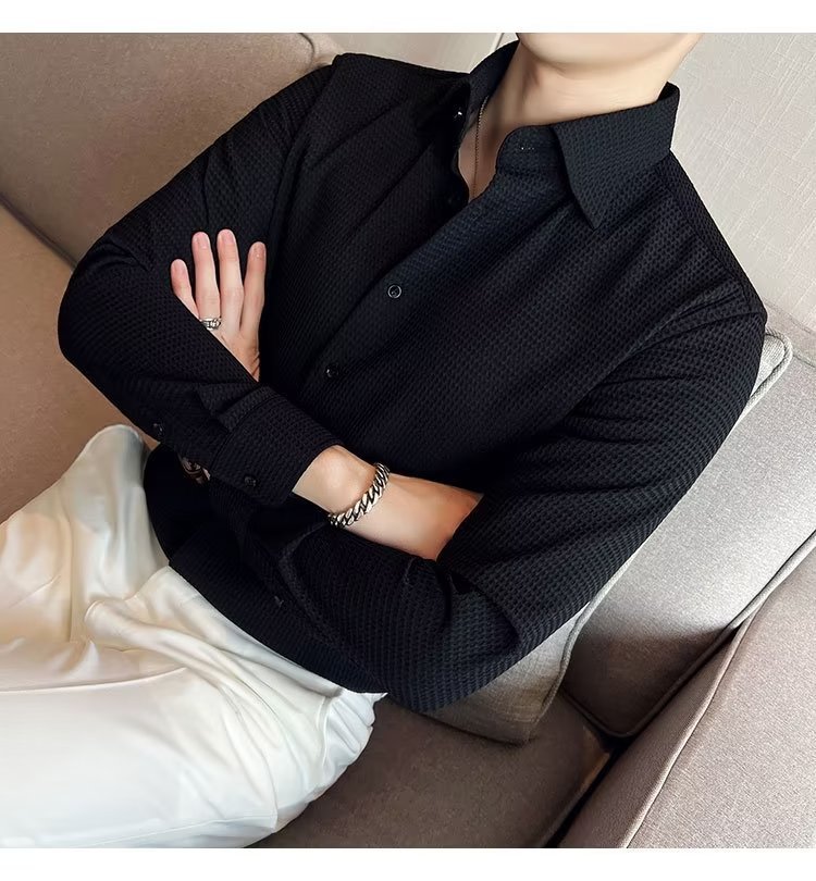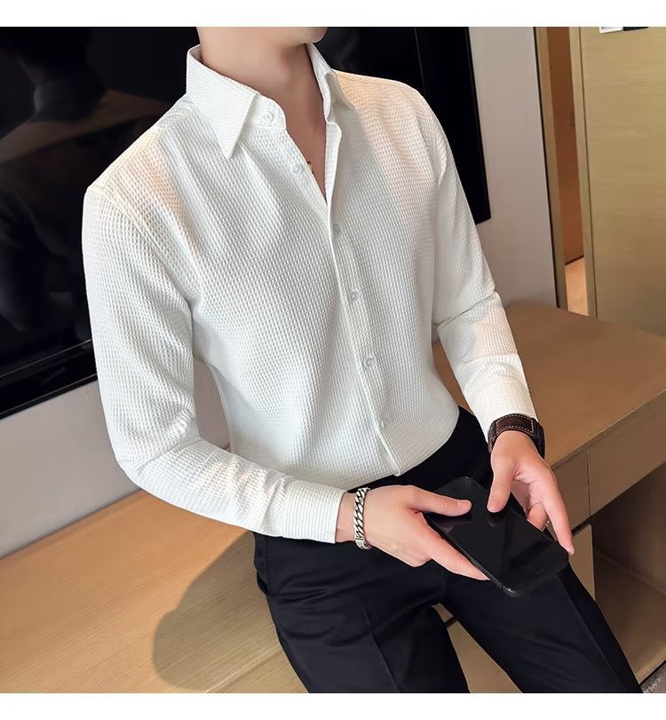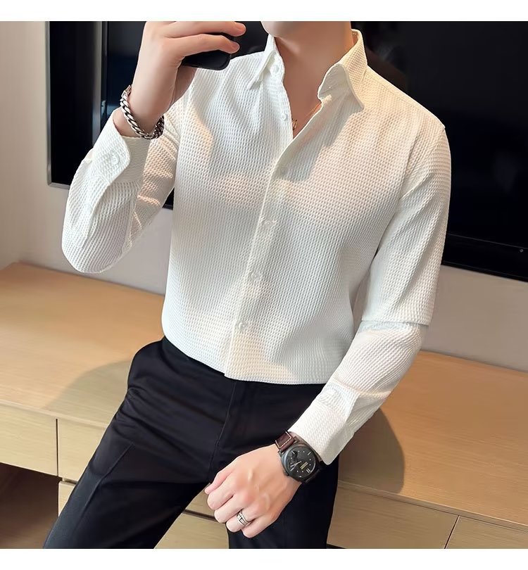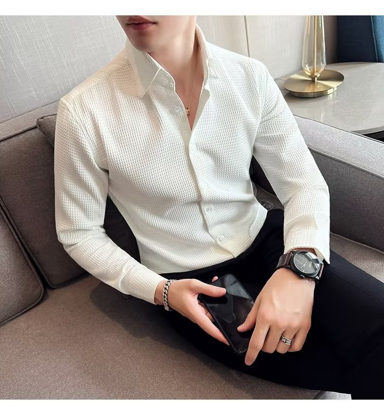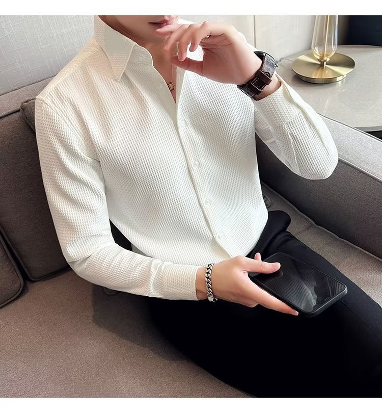 남자 셔츠 긴팔 하이 엔드 센스 새로운 와플 봄과 가을 고급 패션 프랑스 비즈니스 셔츠 남성복스토어 가기