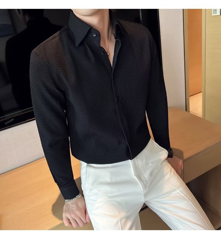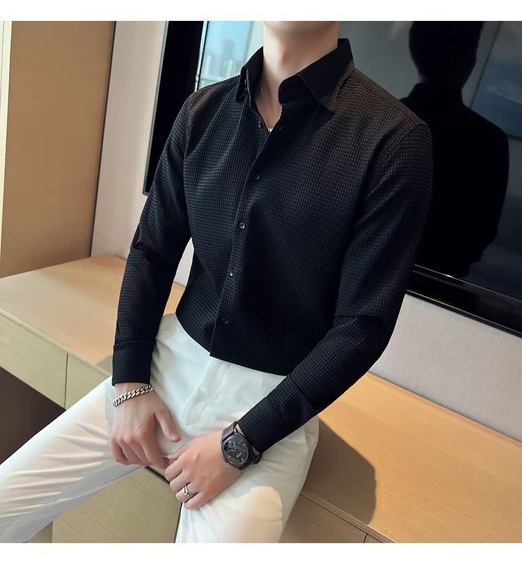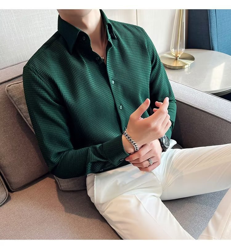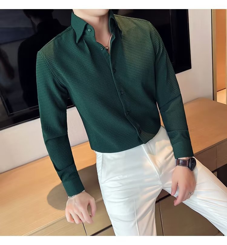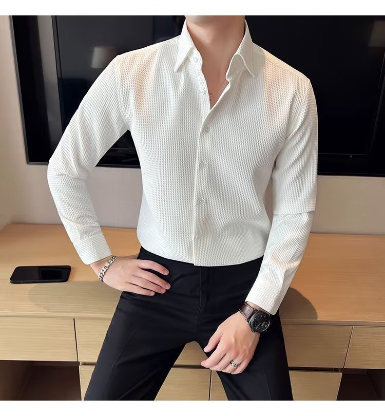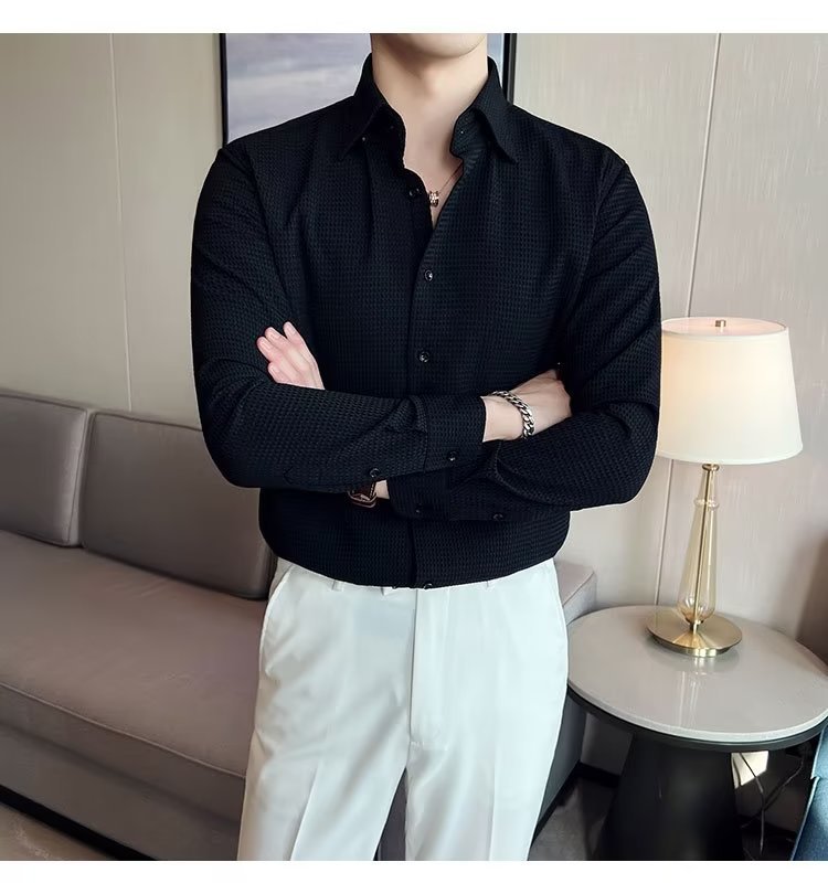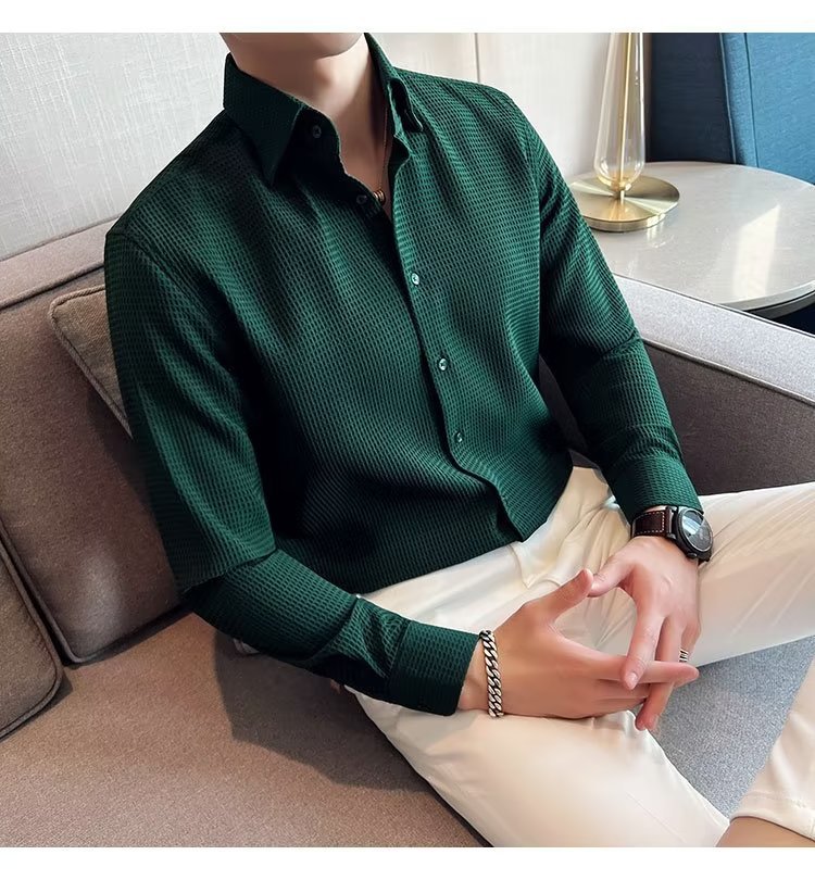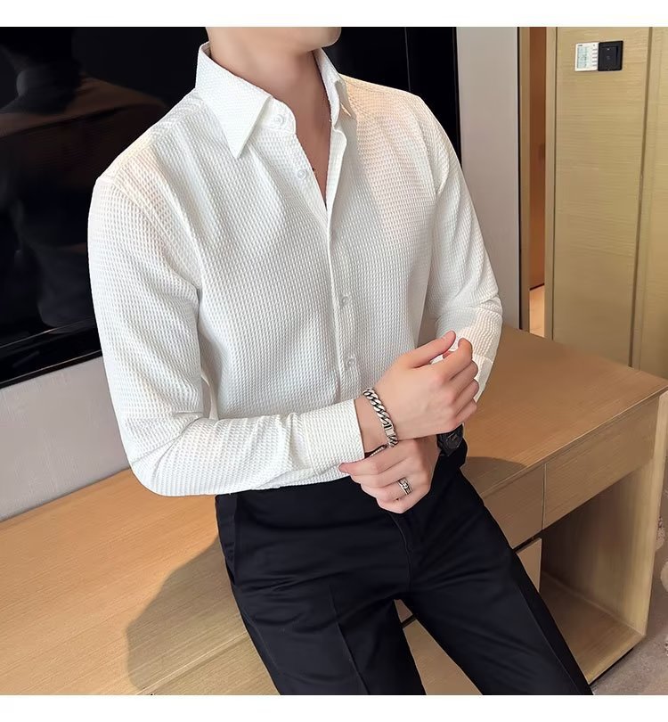 남자 셔츠 긴팔 하이 엔드 센스 새로운 와플 봄과 가을 고급 패션 프랑스 비즈니스 셔츠 남성복스토어 가기
