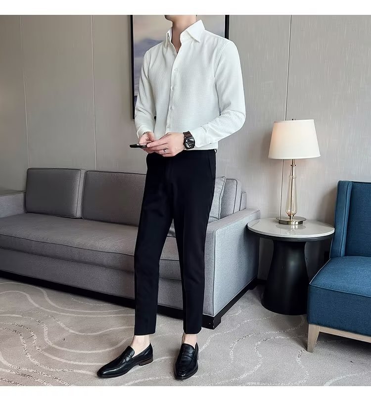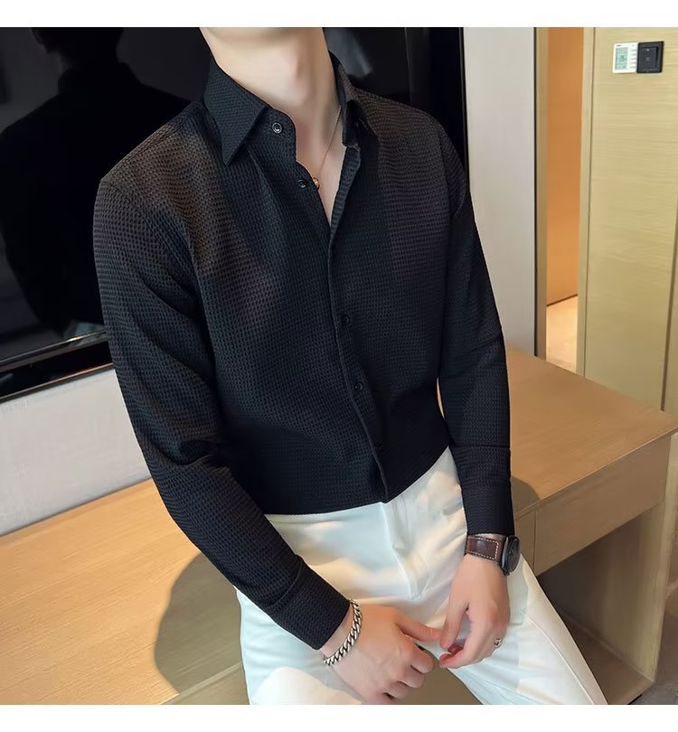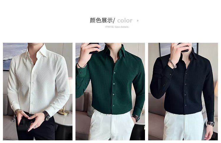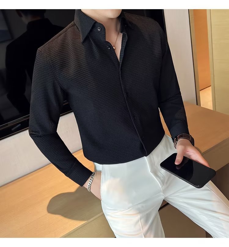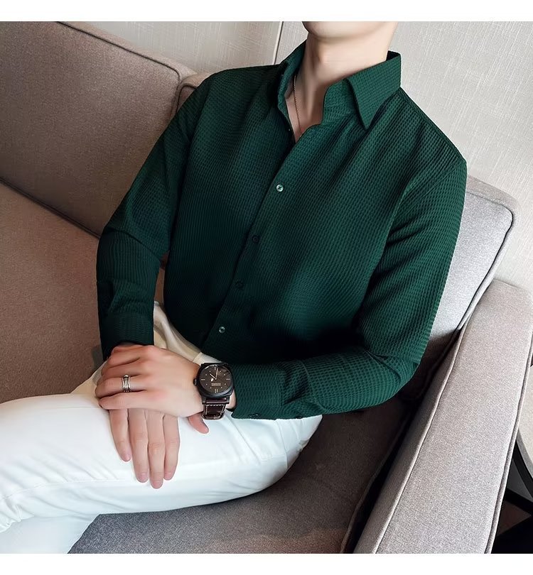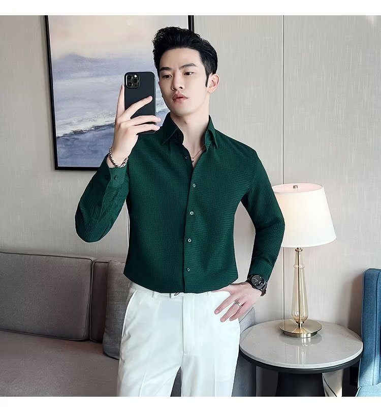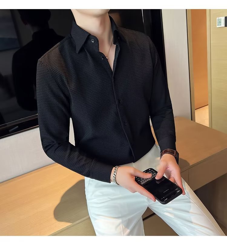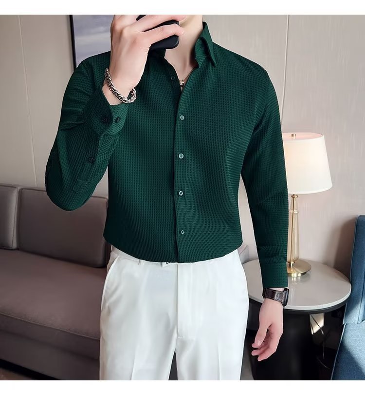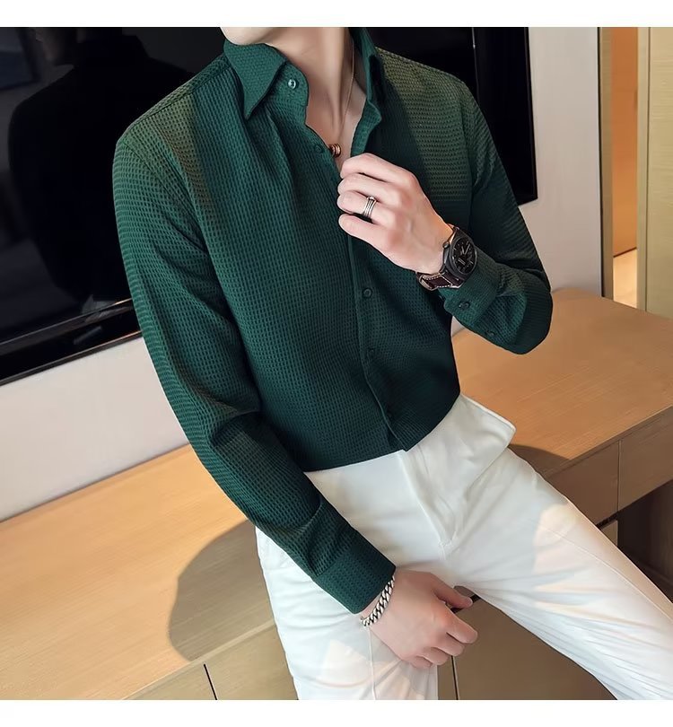 남자 셔츠 긴팔 하이 엔드 센스 새로운 와플 봄과 가을 고급 패션 프랑스 비즈니스 셔츠 남성복스토어 가기