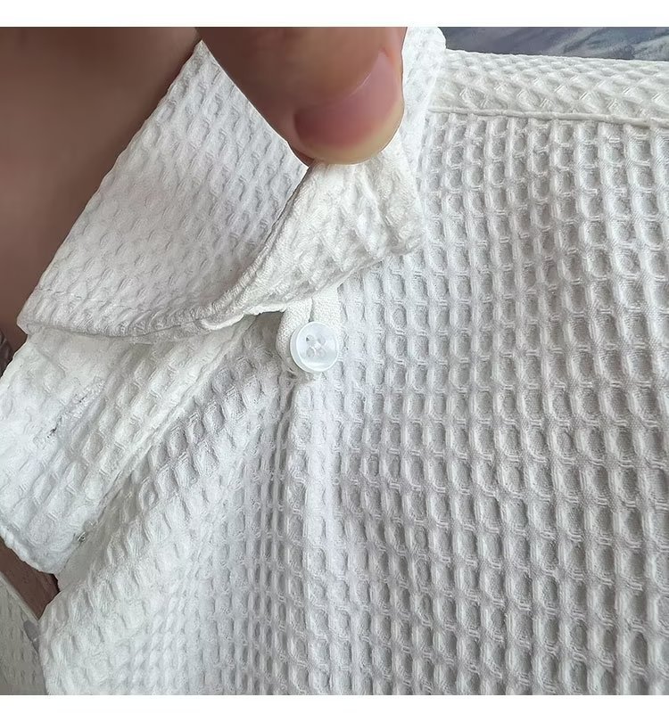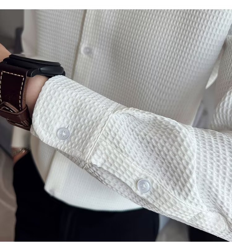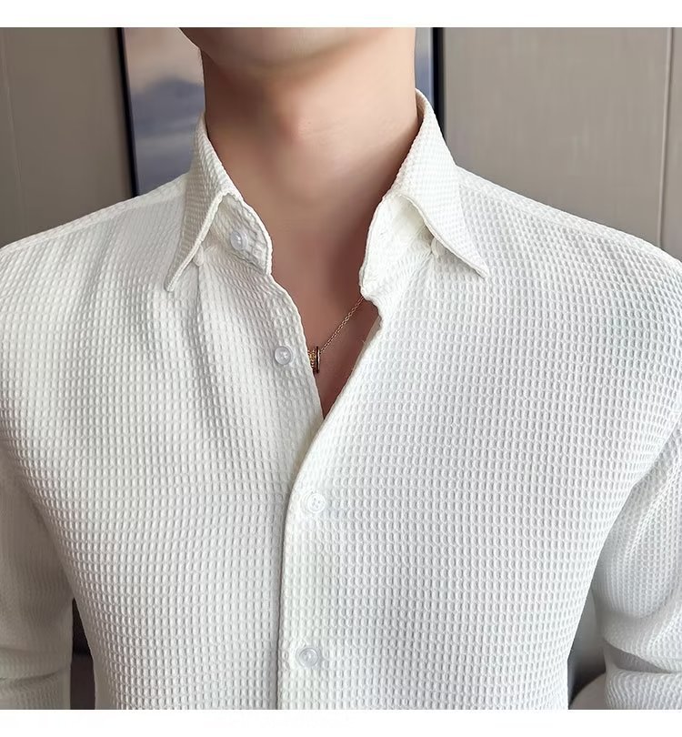 남자 셔츠 긴팔 하이 엔드 센스 새로운 와플 봄과 가을 고급 패션 프랑스 비즈니스 셔츠 남성복