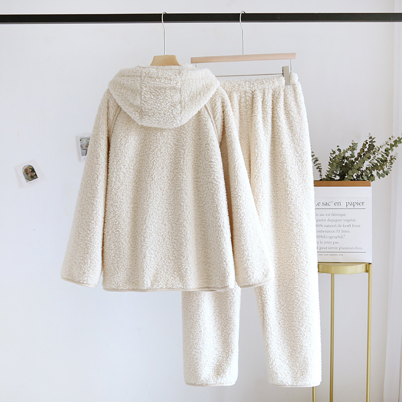 양 벨벳 잠옷 여자의 가을/겨울 남자의 플러스 사이즈 지퍼 후드 홈 의류 두꺼운 양 벨벳 단색 커플 홈 의류