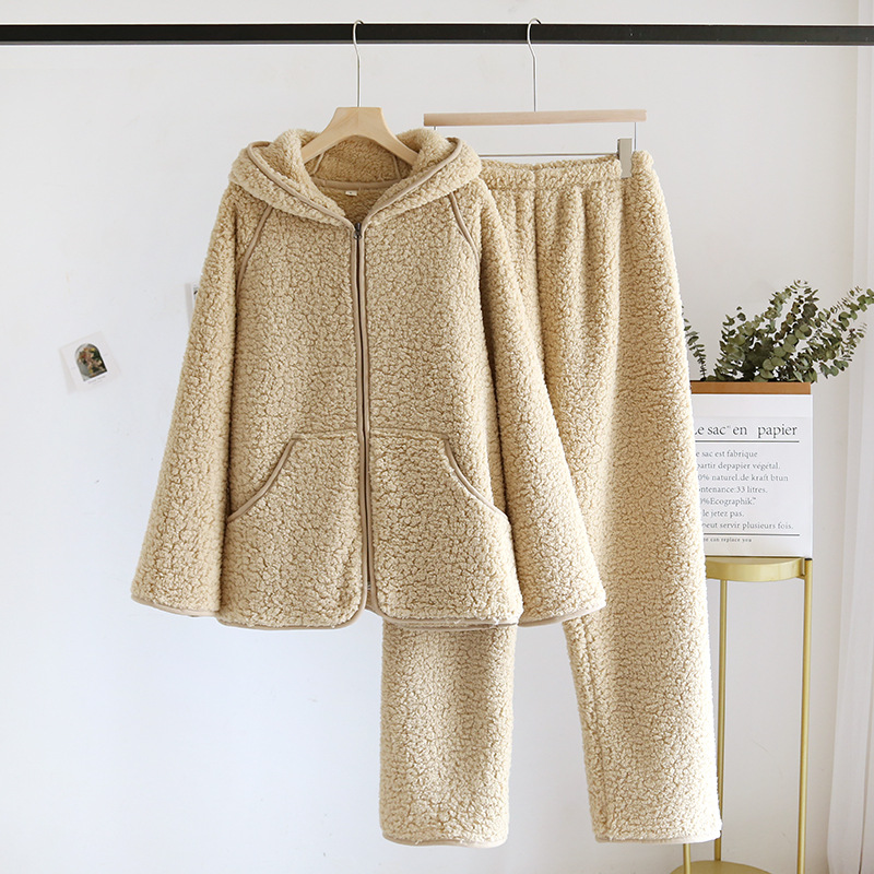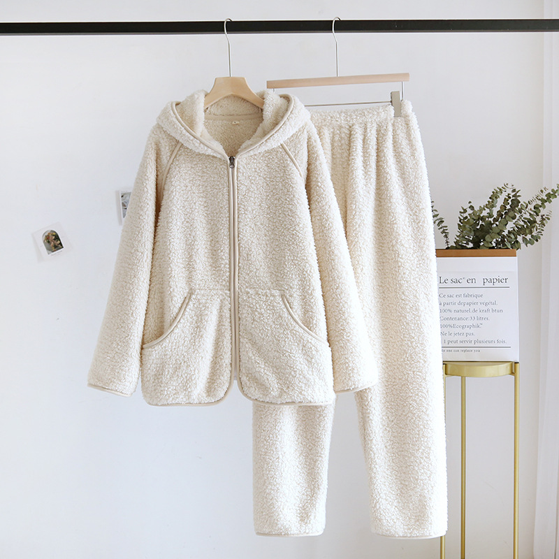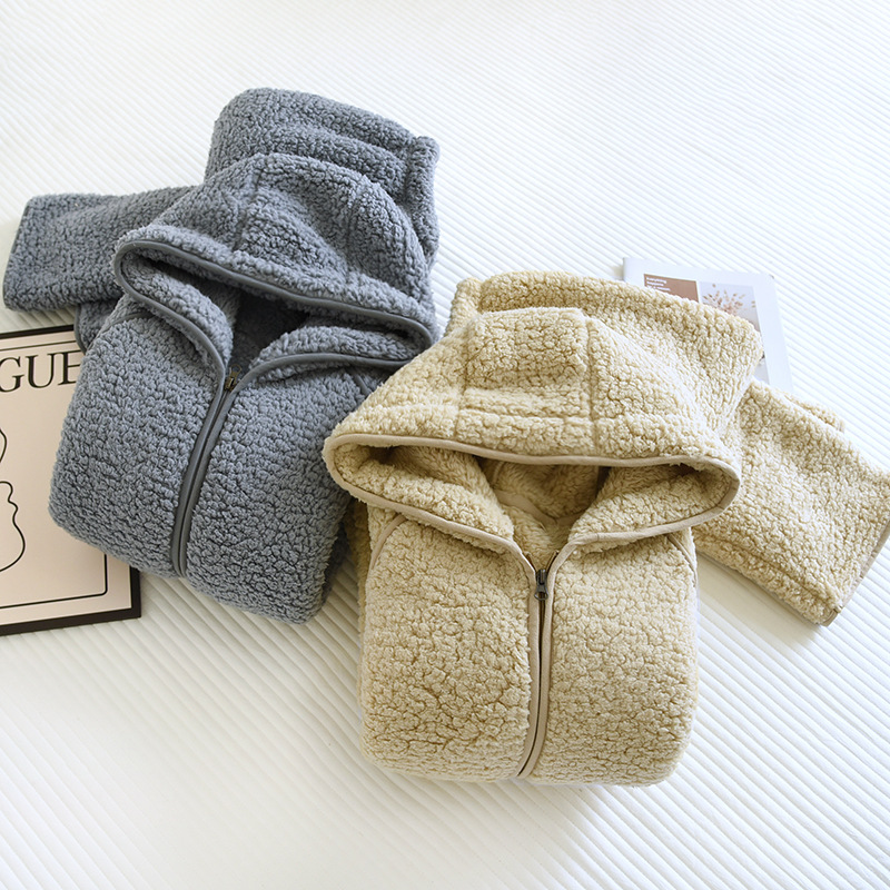 양 벨벳 잠옷 여자의 가을/겨울 남자의 플러스 사이즈 지퍼 후드 홈 의류 두꺼운 양 벨벳 단색 커플 홈 의류스토어 가기