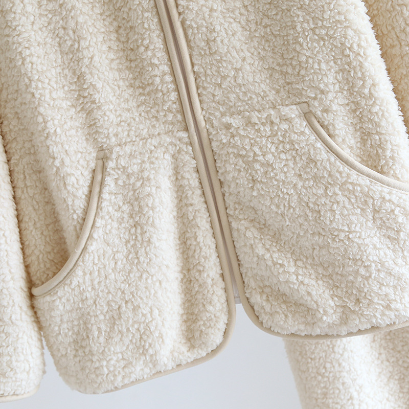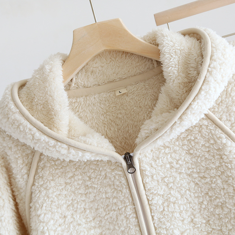 • 여성용 쌀 흰색 후드 지퍼 양고기