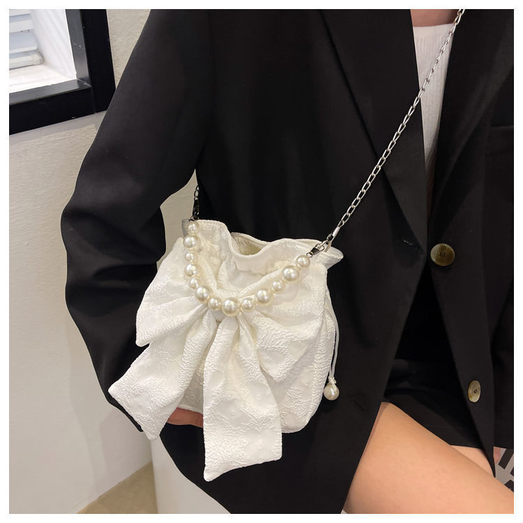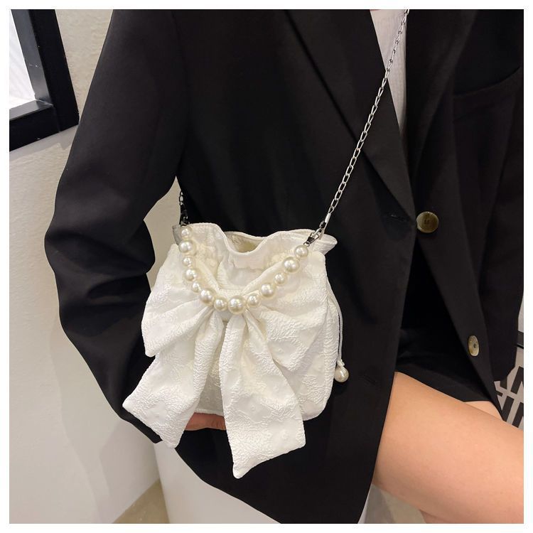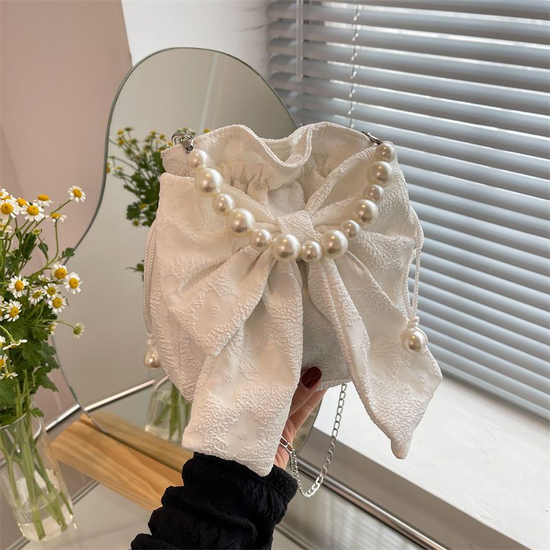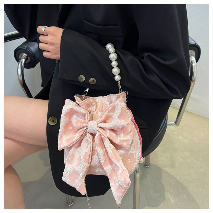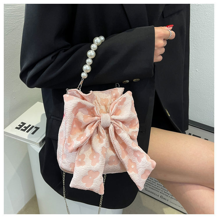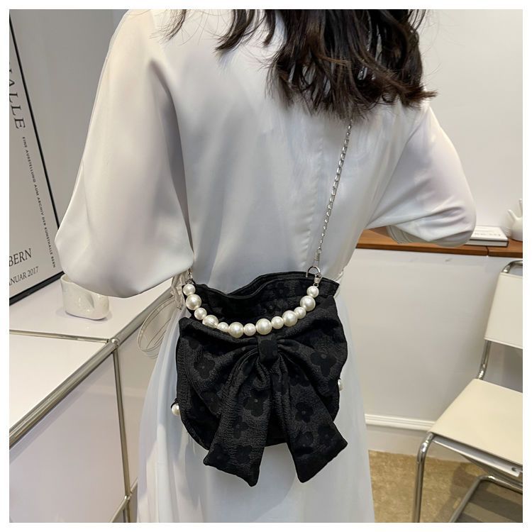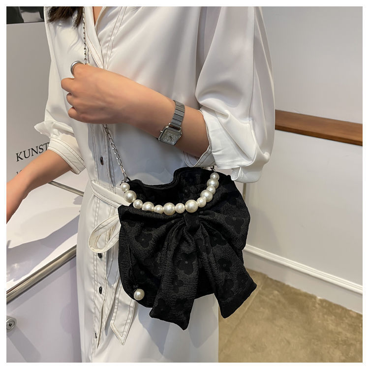 여성 가방 올해 유행하는 틈새 가방 2024 신상 트렌디 가을 다용도 귀여운 리본 진주 핸드백 크로스백