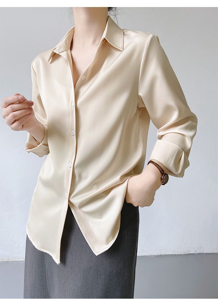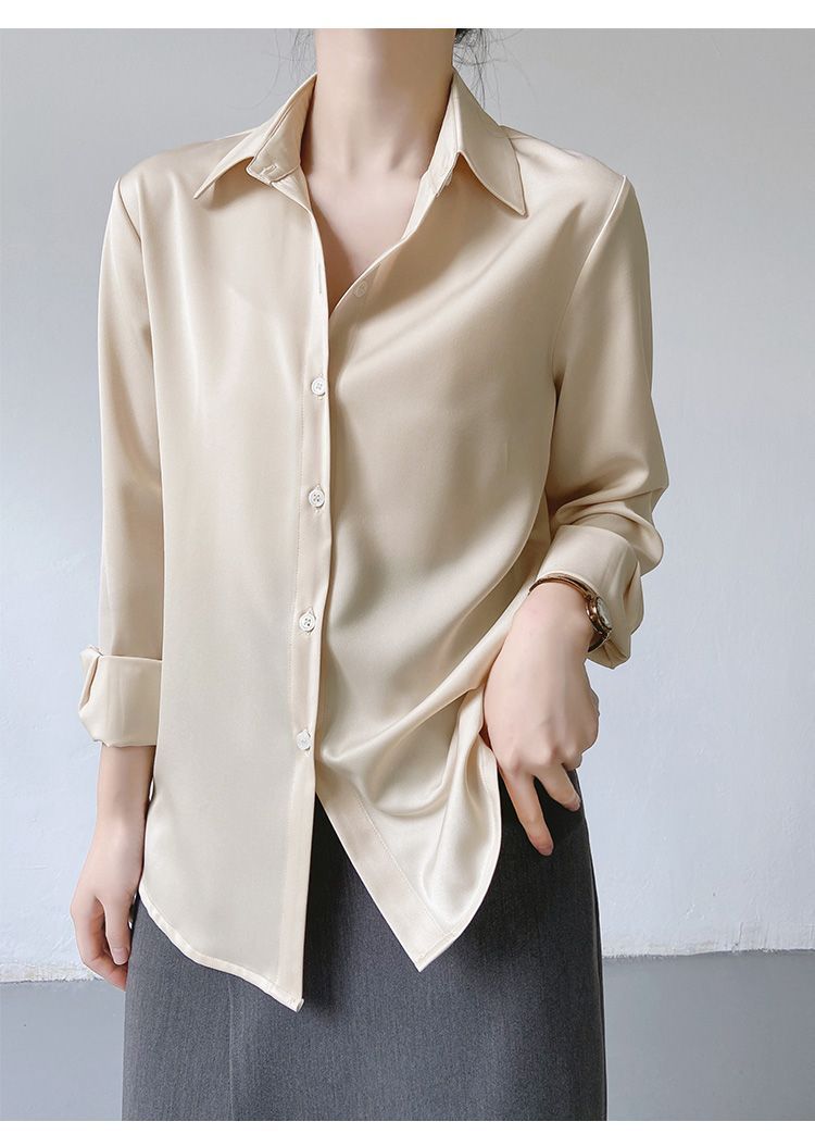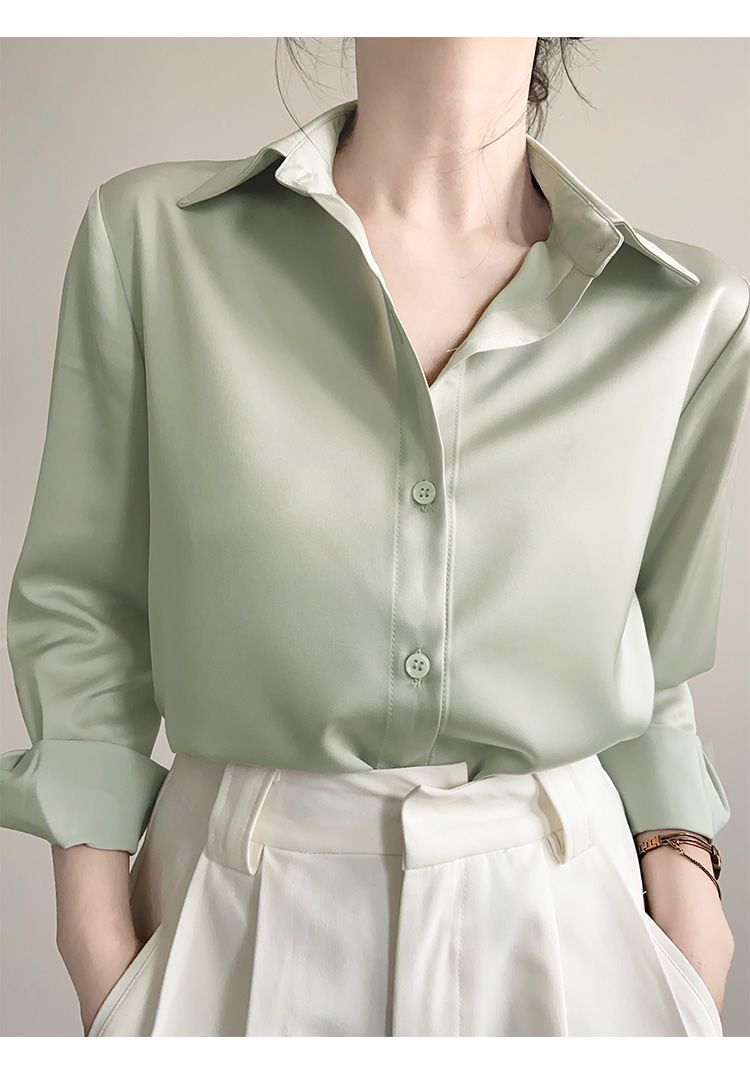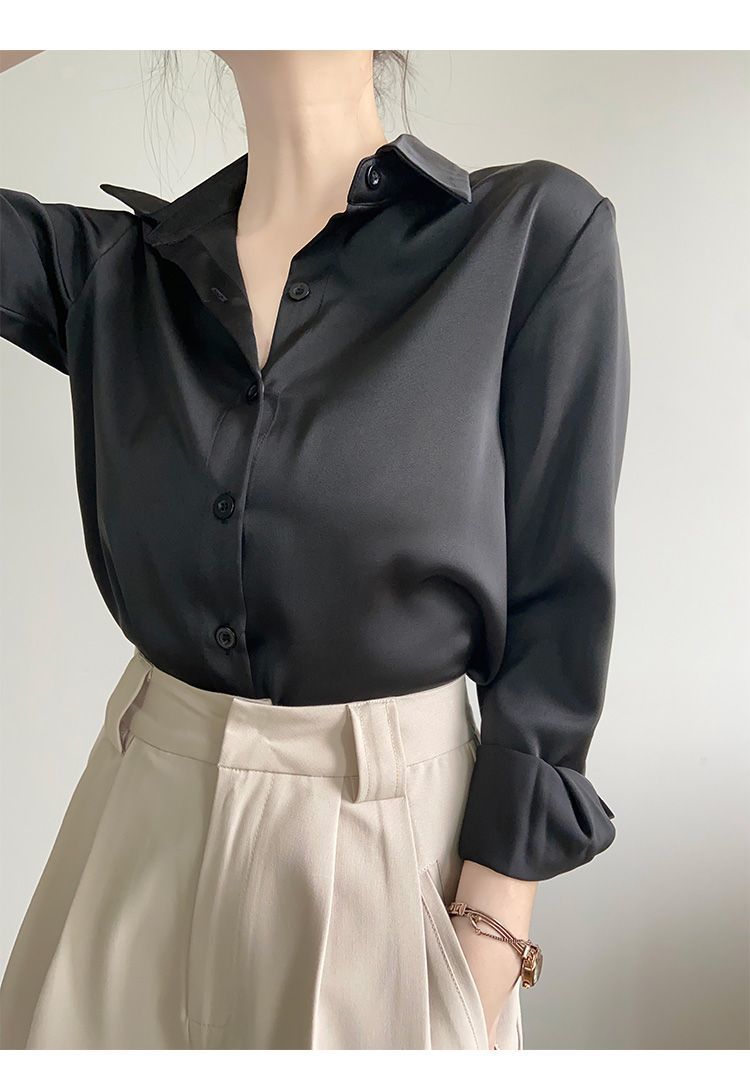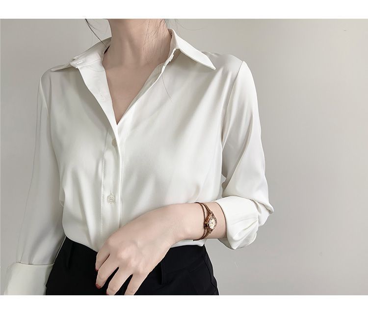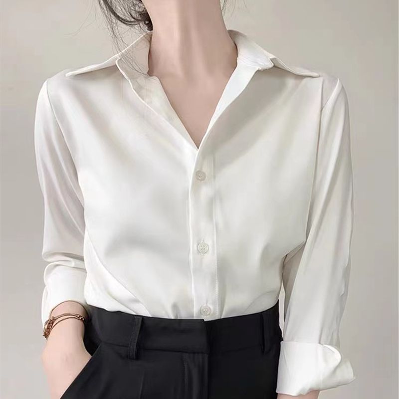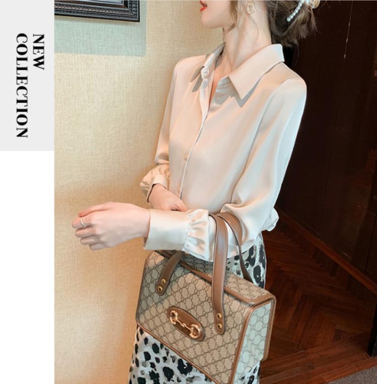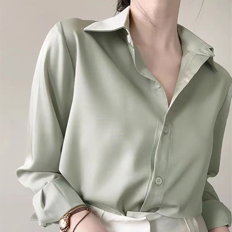 긴 소매 쉬폰 셔츠 여자 2024 봄 올매치 드래핑 레트로 새틴 셔츠 작은 셔츠 디자인 틈새스토어 가기