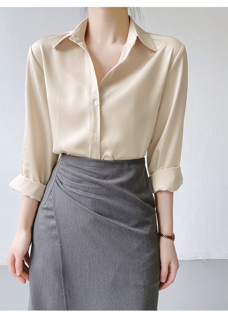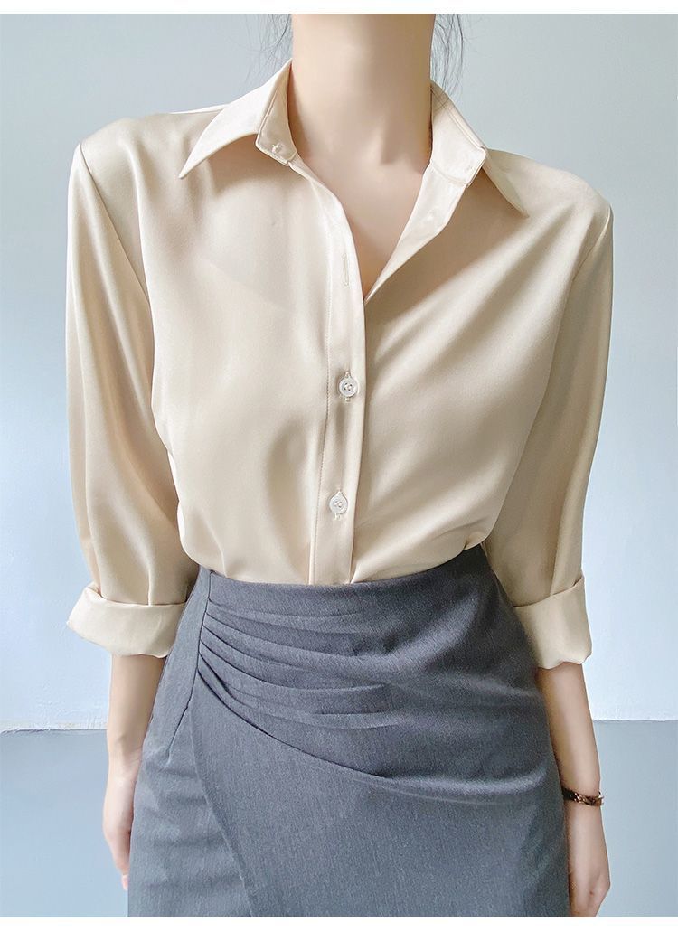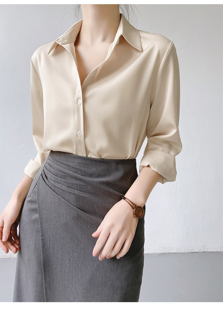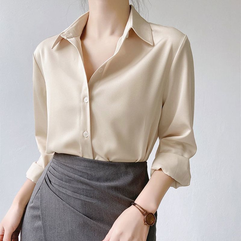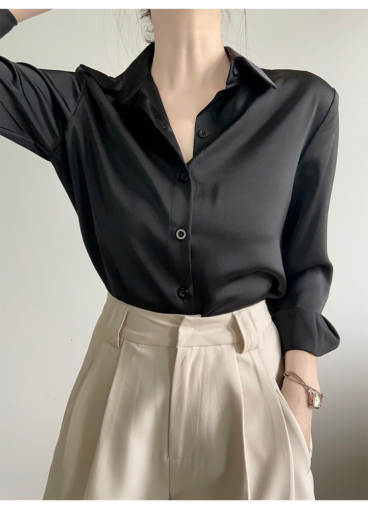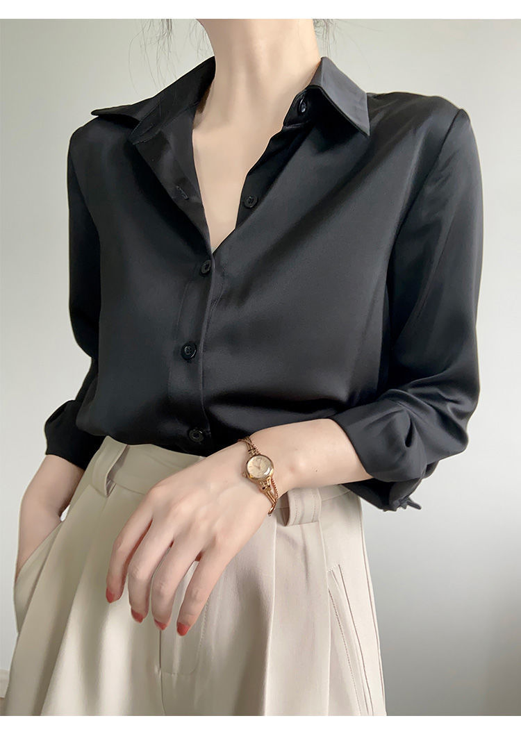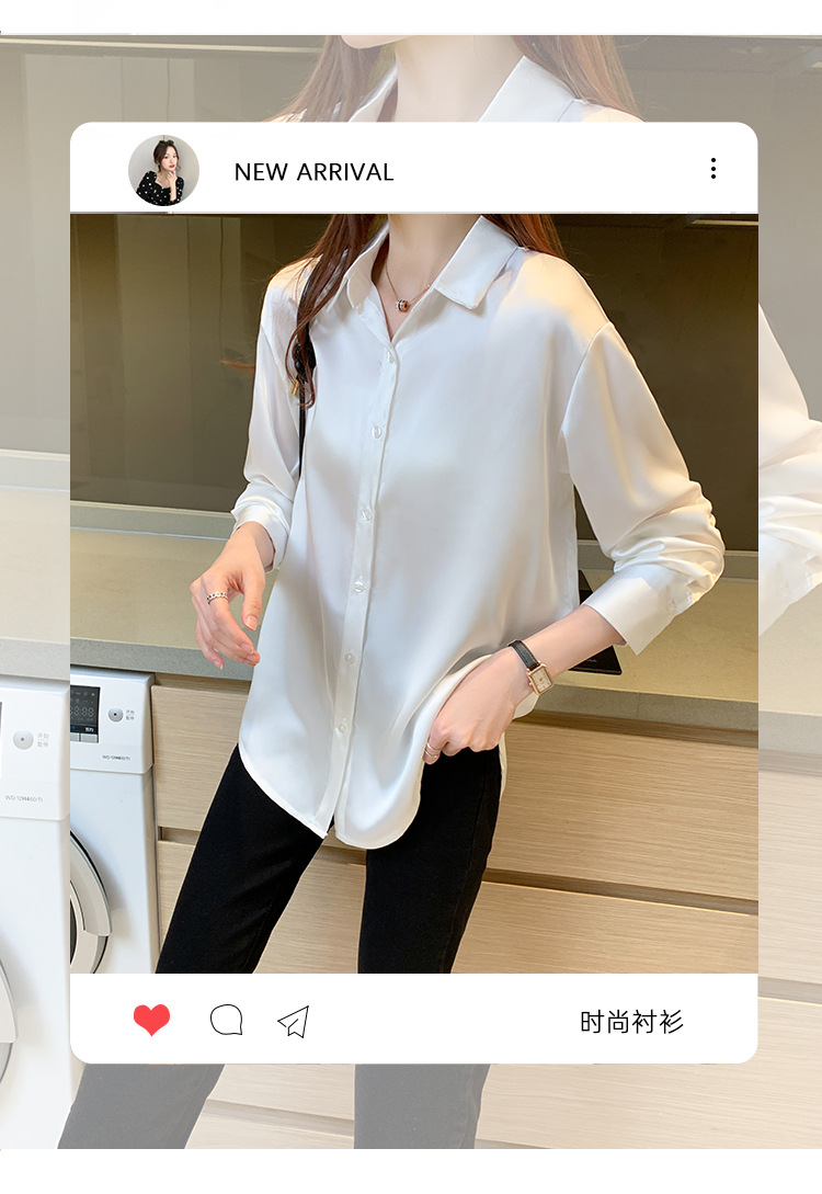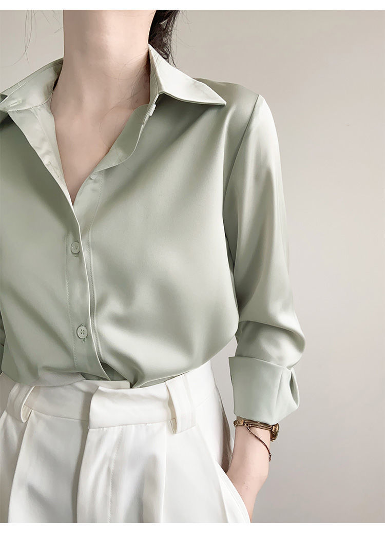 긴 소매 쉬폰 셔츠 여자 2024 봄 올매치 드래핑 레트로 새틴 셔츠 작은 셔츠 디자인 틈새스토어 가기