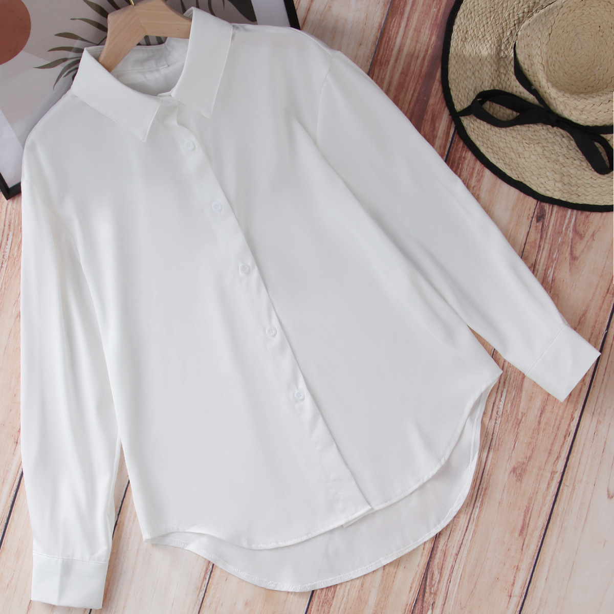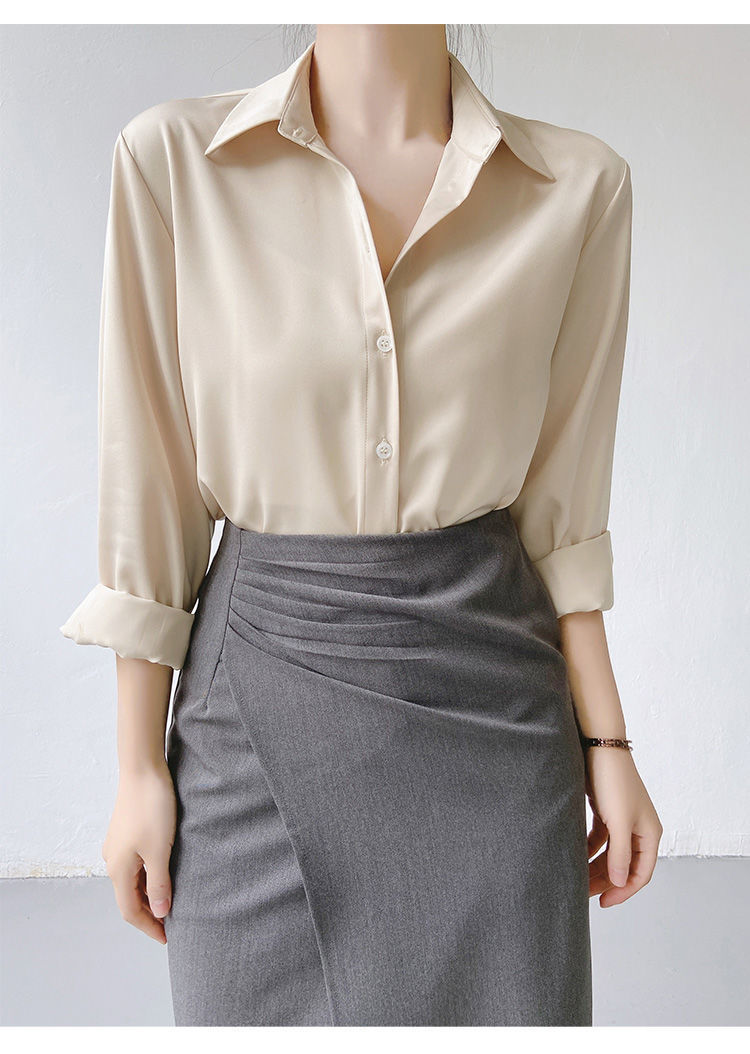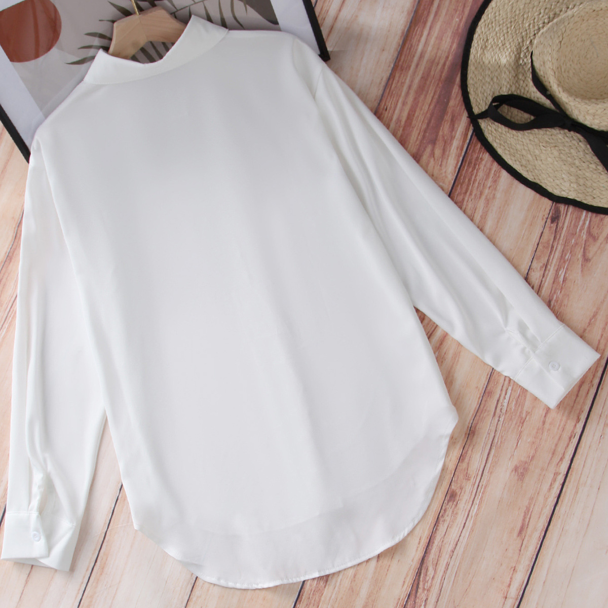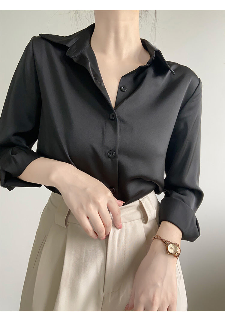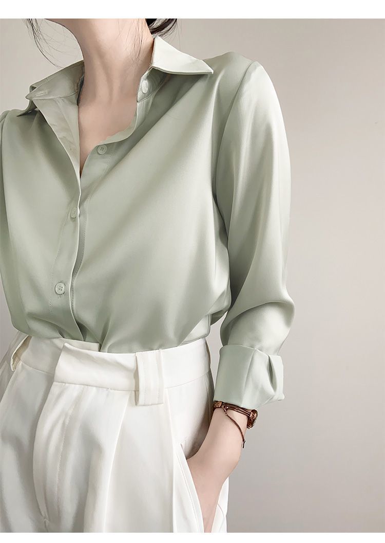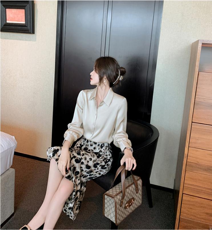긴 소매 쉬폰 셔츠 여자 2024 봄 올매치 드래핑 레트로 새틴 셔츠 작은 셔츠 디자인 틈새스토어 가기