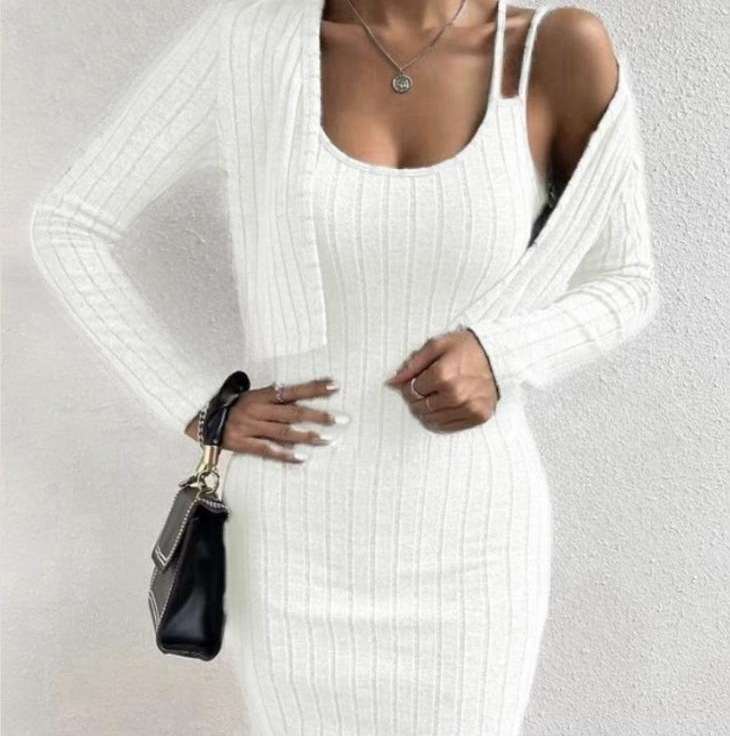 双吊带设计巧妙地勾勒出优美的肩颈线条,细带轻盈不勒肩 背心裙的裙摆采用A字版型 修饰身形的同时带来轻松自在的穿着体验。搭配的小外套款式简约时尚,可敞开穿展现随性慵懒风,也可系在腰间打造层次感,为整体造型增添精致细节。内裙单独穿着时,同样展现出其百搭特性,无论是日常通勤、休闲都能轻松驾驭。面料选用柔软舒适亲肤,亲肤透气,整体套装色彩清新雅致,细节处的精致缝线和细腻做工,彰显出时尚与品质的完美结合