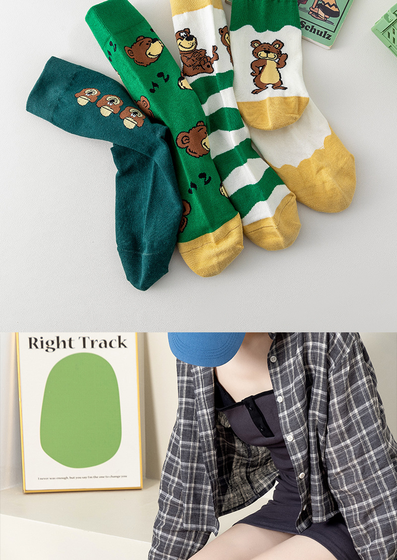 슈퍼마켓 양말 여성용 양말 탈취제 땀 흡수성 면 양말 곰 새로운 여성의 귀여운 만화 더미 양말 재고스토어 가기