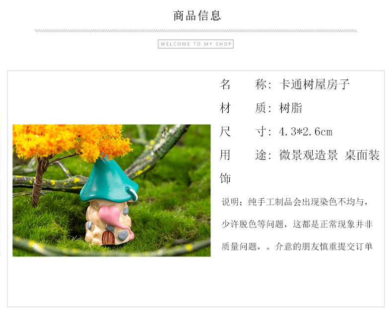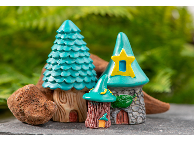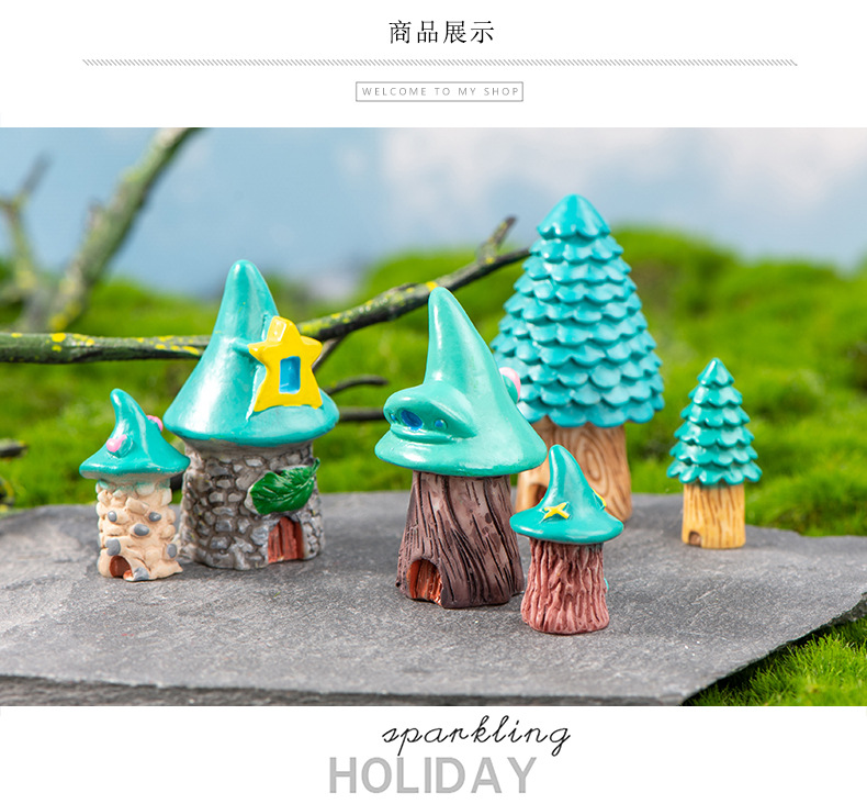 마이크로 조경 수지 공예 작은 장식품 원예 장면 조경 만화 나무 집 집 DIY 수제스토어 가기