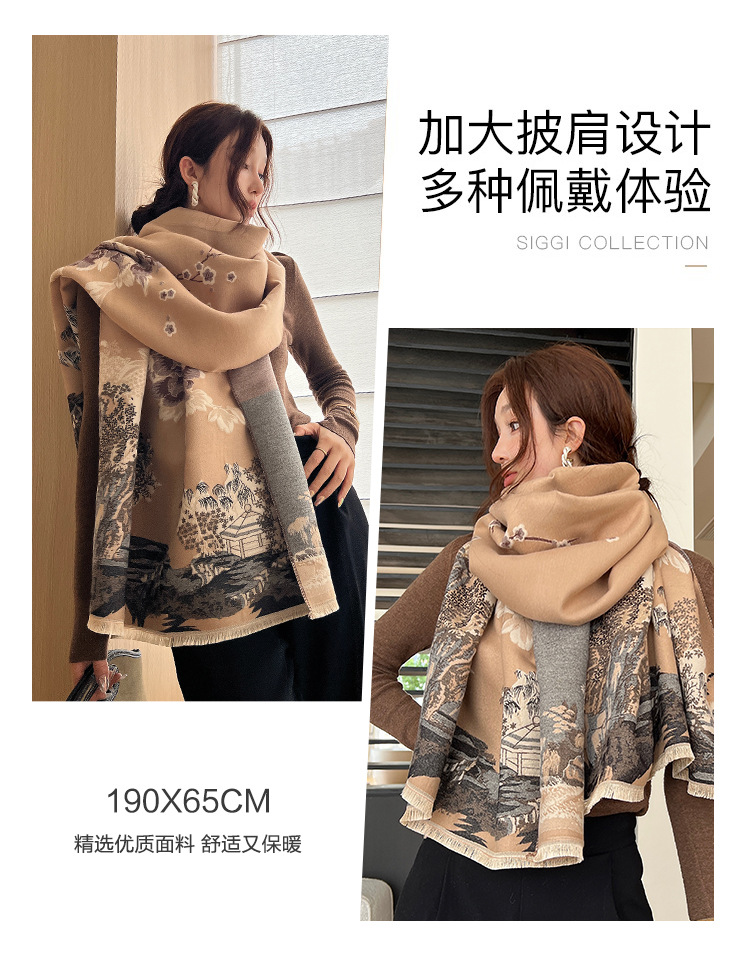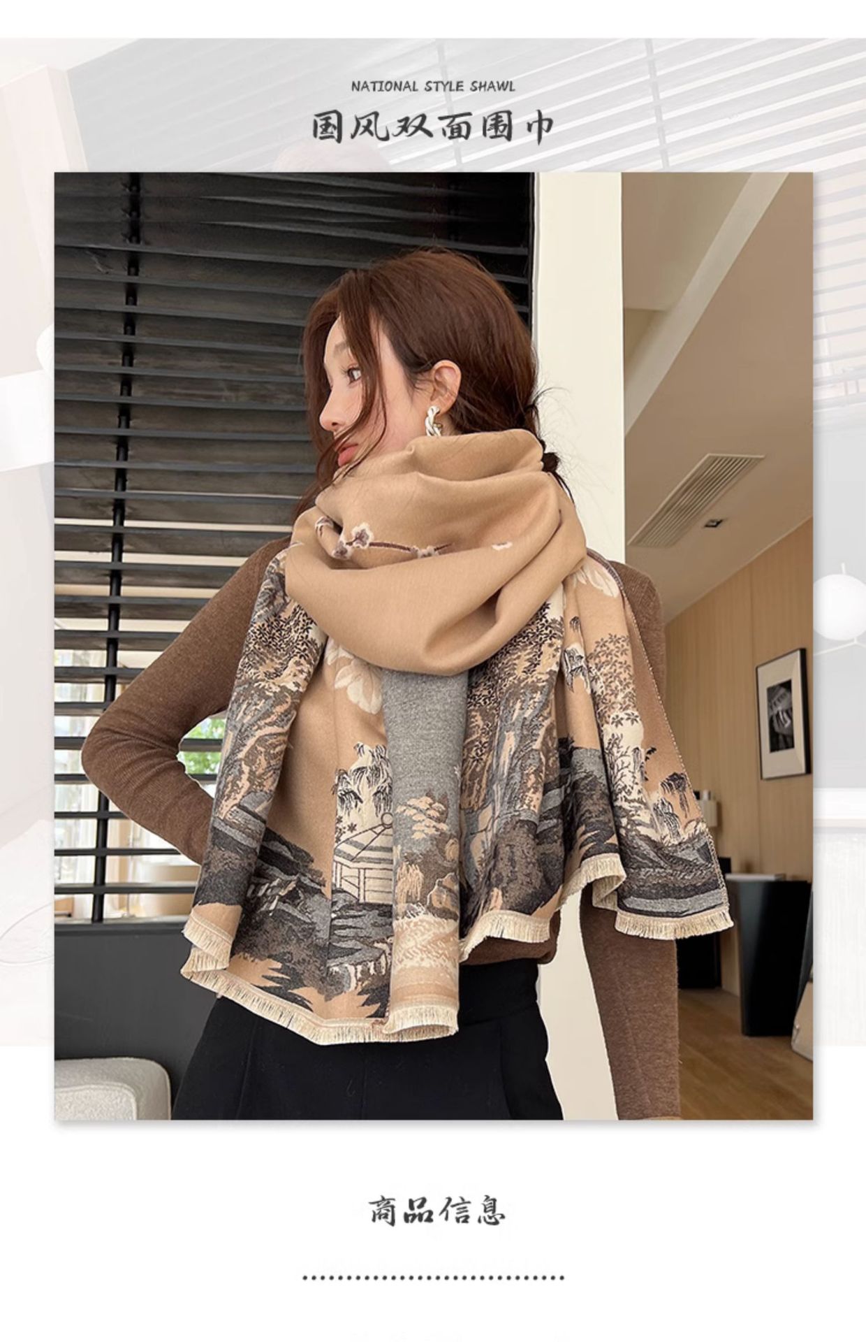 스카프 여성의 가을과 겨울 중국 스타일 모든 경기 두꺼운 모조 캐시미어 에어컨 룸 숄 목 보호 스카프 외부 따뜻한 이중 사용스토어 가기