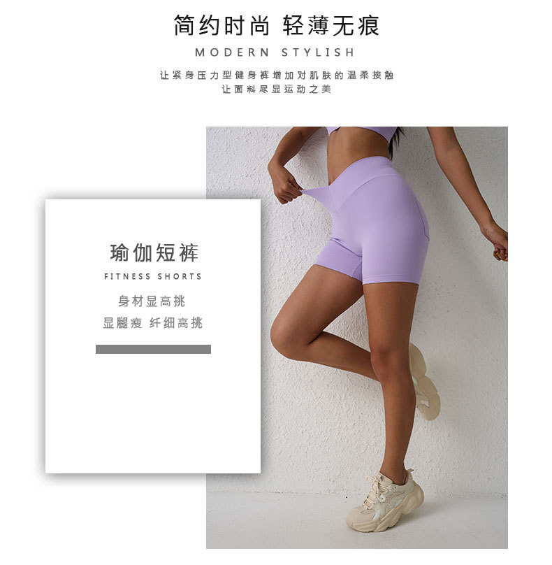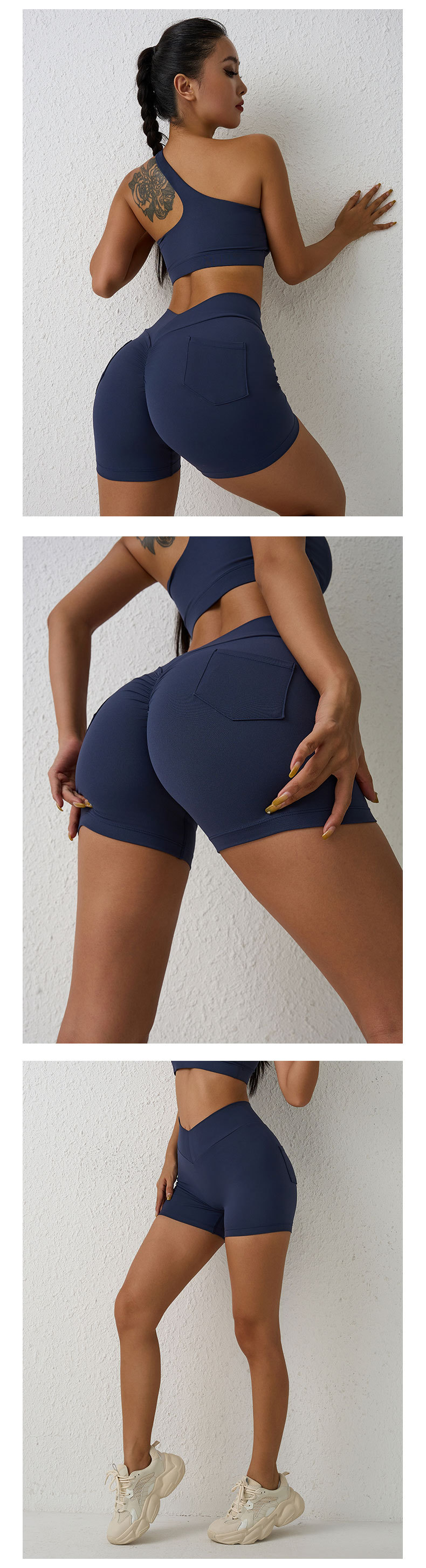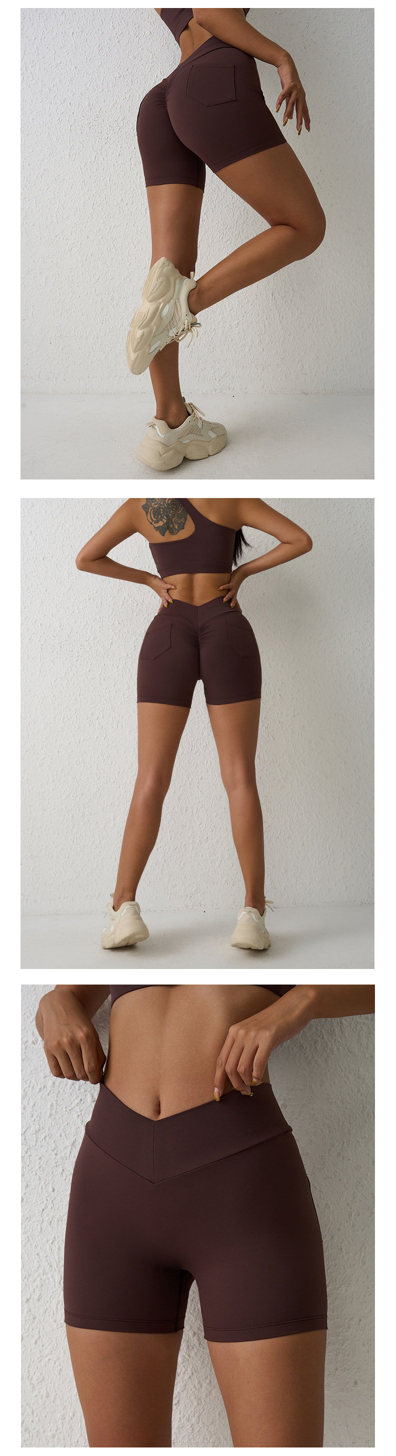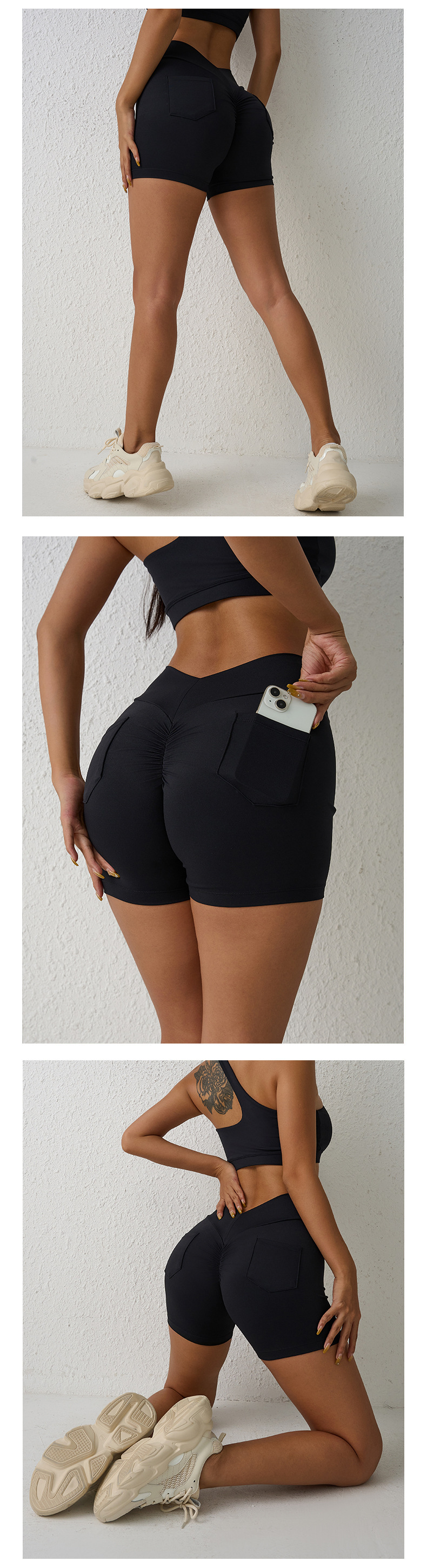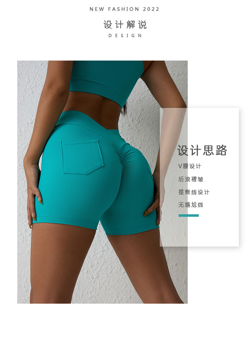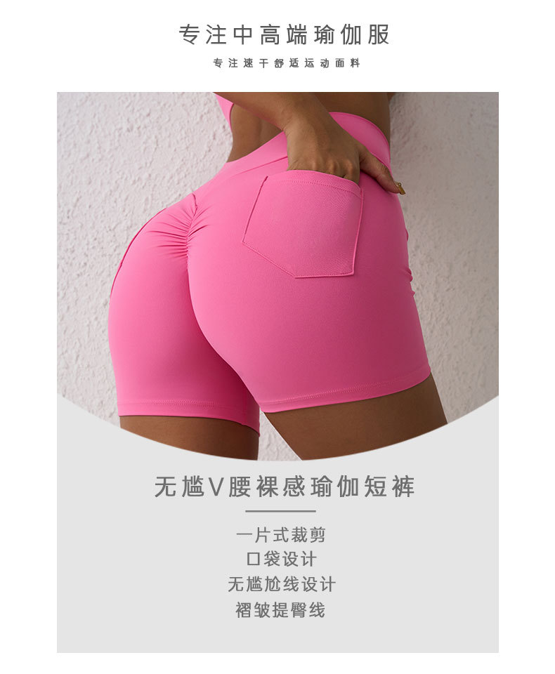 알몸 요가 반바지 카고 포켓 타이트 반바지 V 허리 주름 엉덩이 속건 피트니스 트레이닝 스포츠 반바지