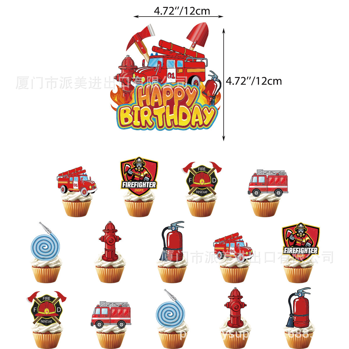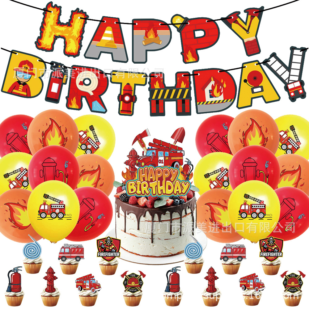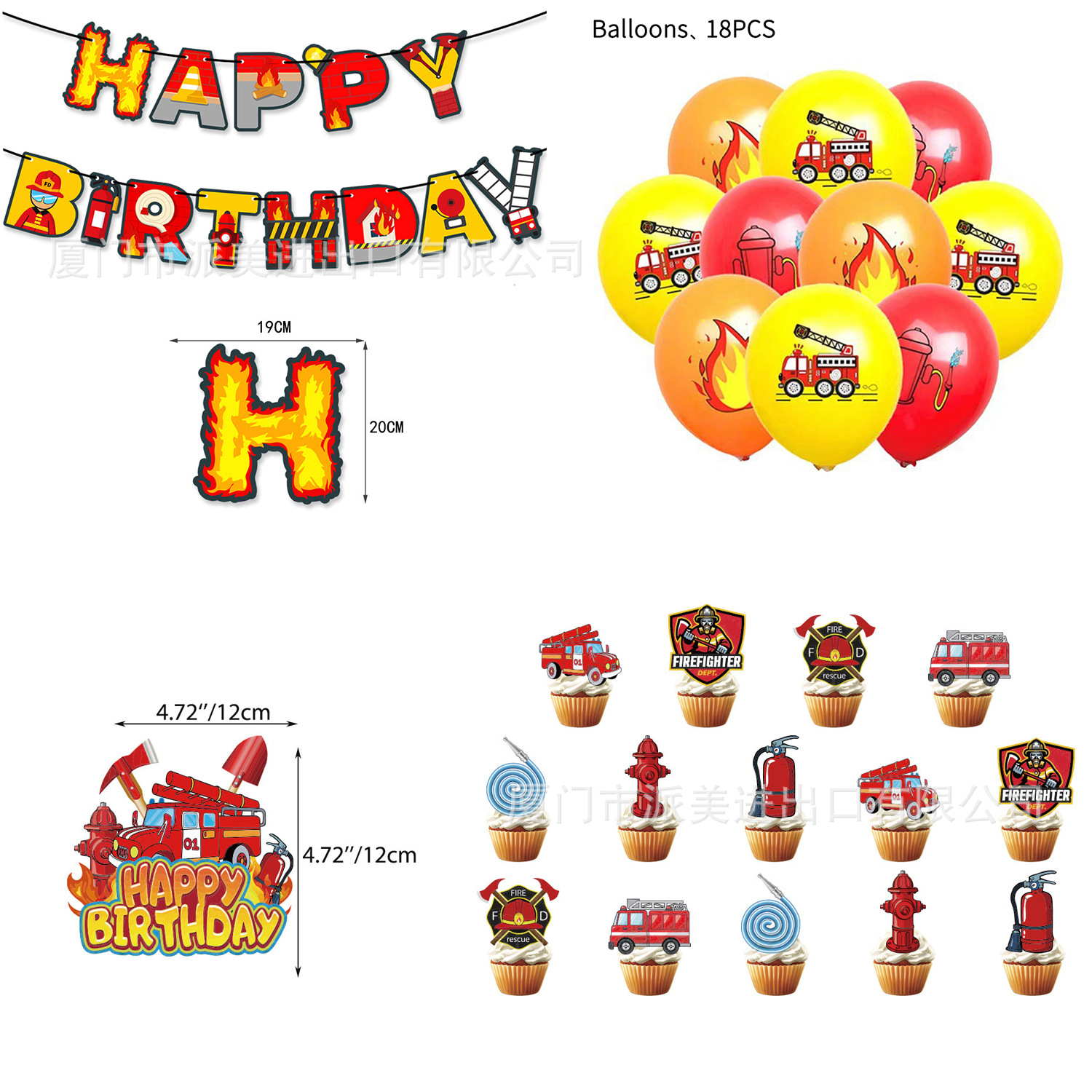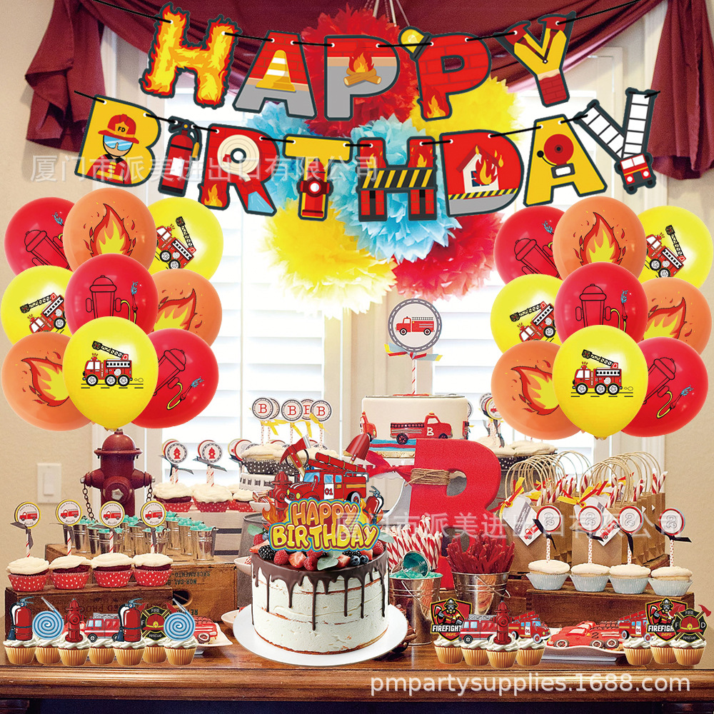 소방차 테마 파티 장식 어린이 생일 배경 배너 플래그 케이크 카드 풍선 배열 세트스토어 가기