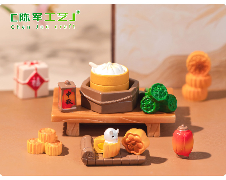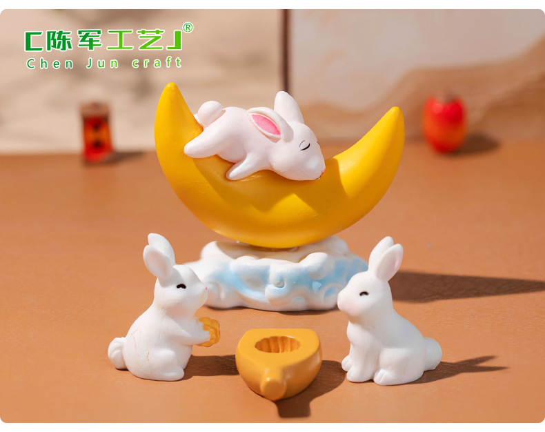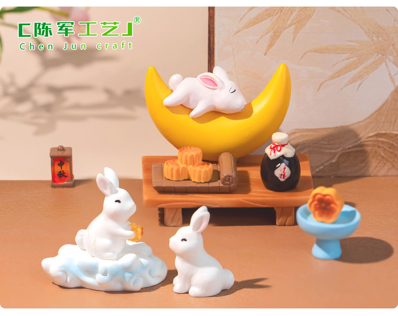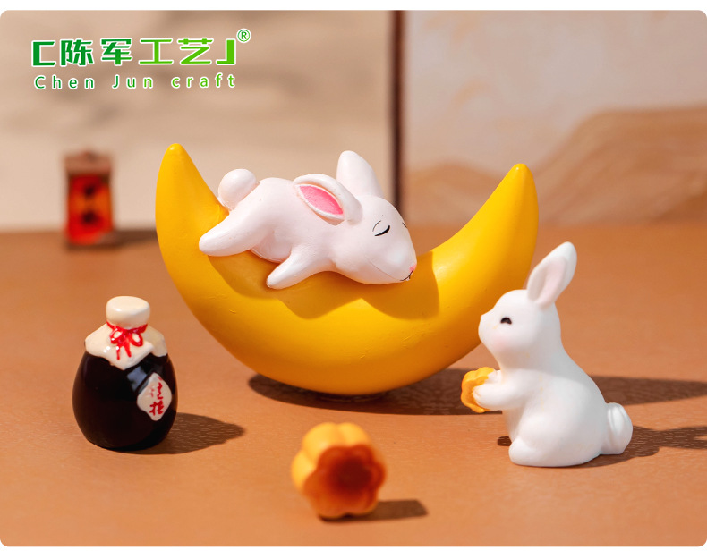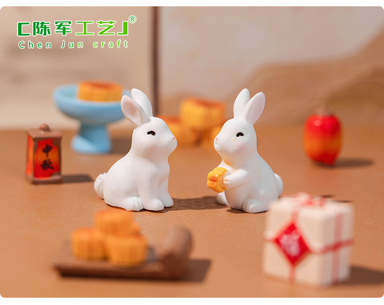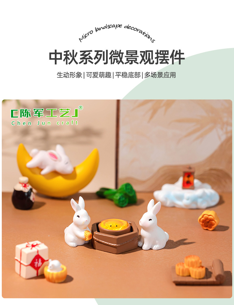 마이크로 풍경 크리 에이 티브 귀여운 중순 가을 축제 문 케이크 토끼 동물 원예 조경 액세서리 데스크탑 작은 장식품