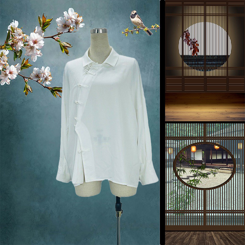 재고 양 미 같은 스타일 화이트 새로운 중국 스타일 셔츠 디자인 감각 중국 스타일 버튼 가을 느슨한 우아한 셔츠 여성용