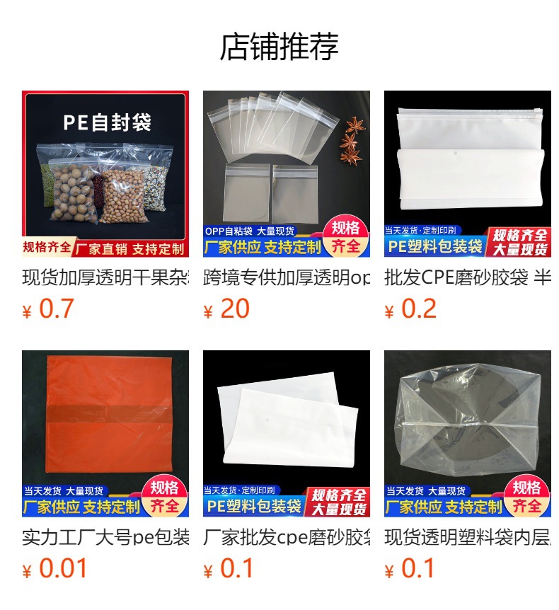 재고 있음 PE 백 평면 백 투명 비닐백 두꺼운 의류 포장백 식품 금속 나사백 방진 PE 백스토어 가기