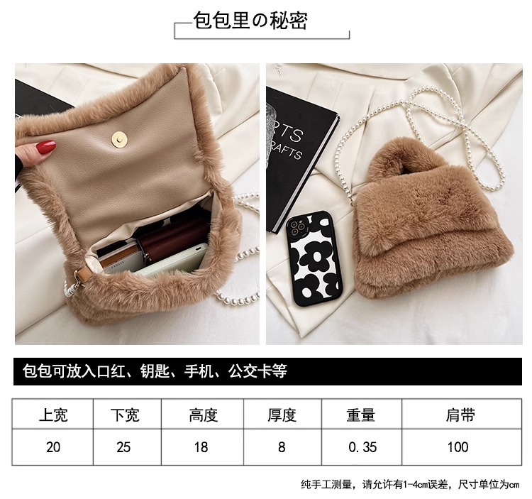 가을과 겨울 새로운 진주 체인 백 봉제 가방 여성용 숄더 크로스바디 퍼 백 여성용 올매치 하이 엔드 핸드백스토어 가기