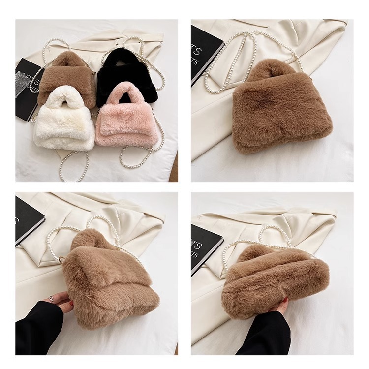 가을과 겨울 새로운 진주 체인 백 봉제 가방 여성용 숄더 크로스바디 퍼 백 여성용 올매치 하이 엔드 핸드백