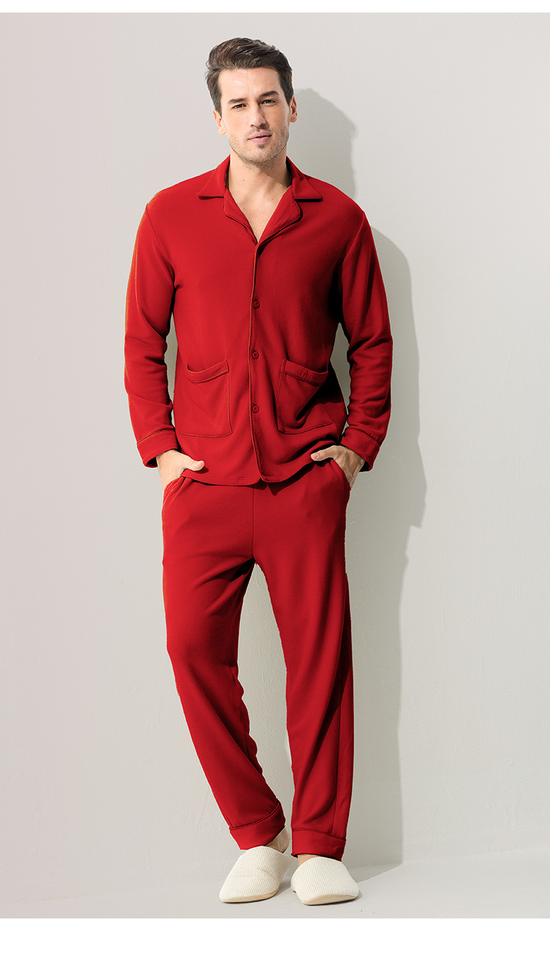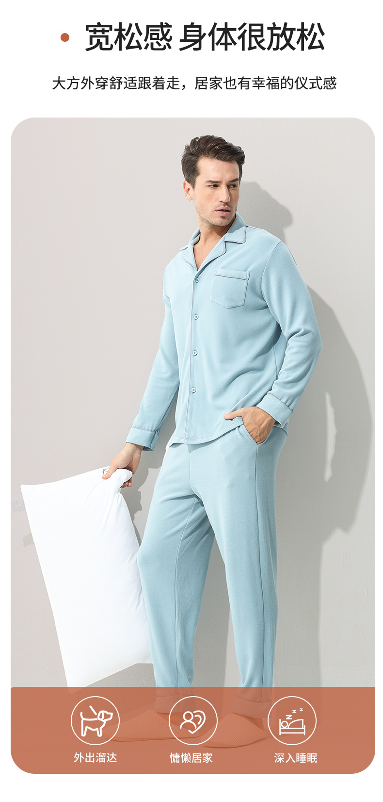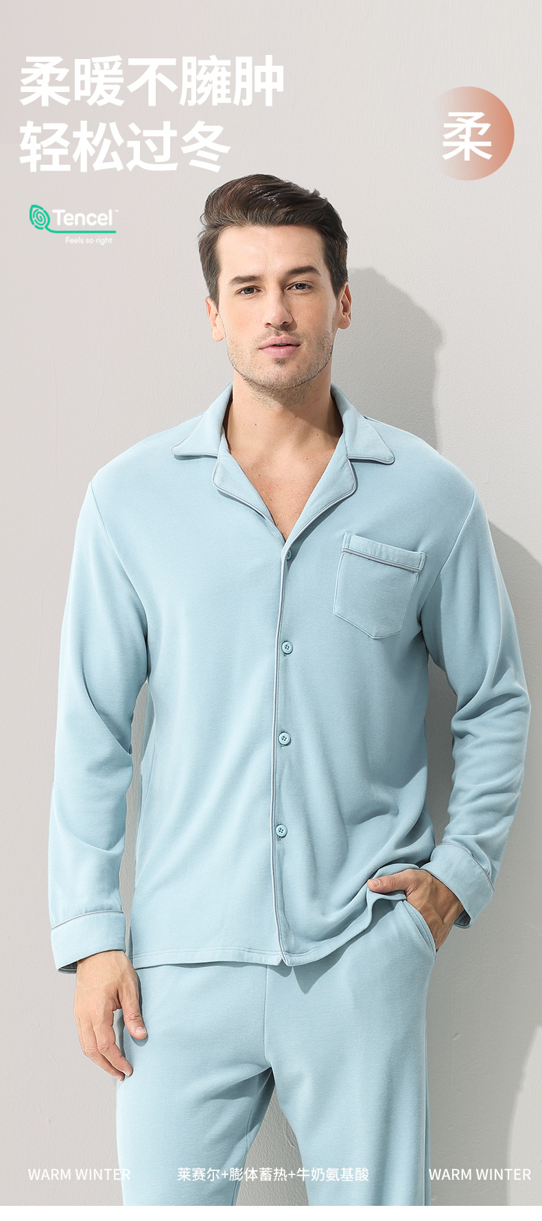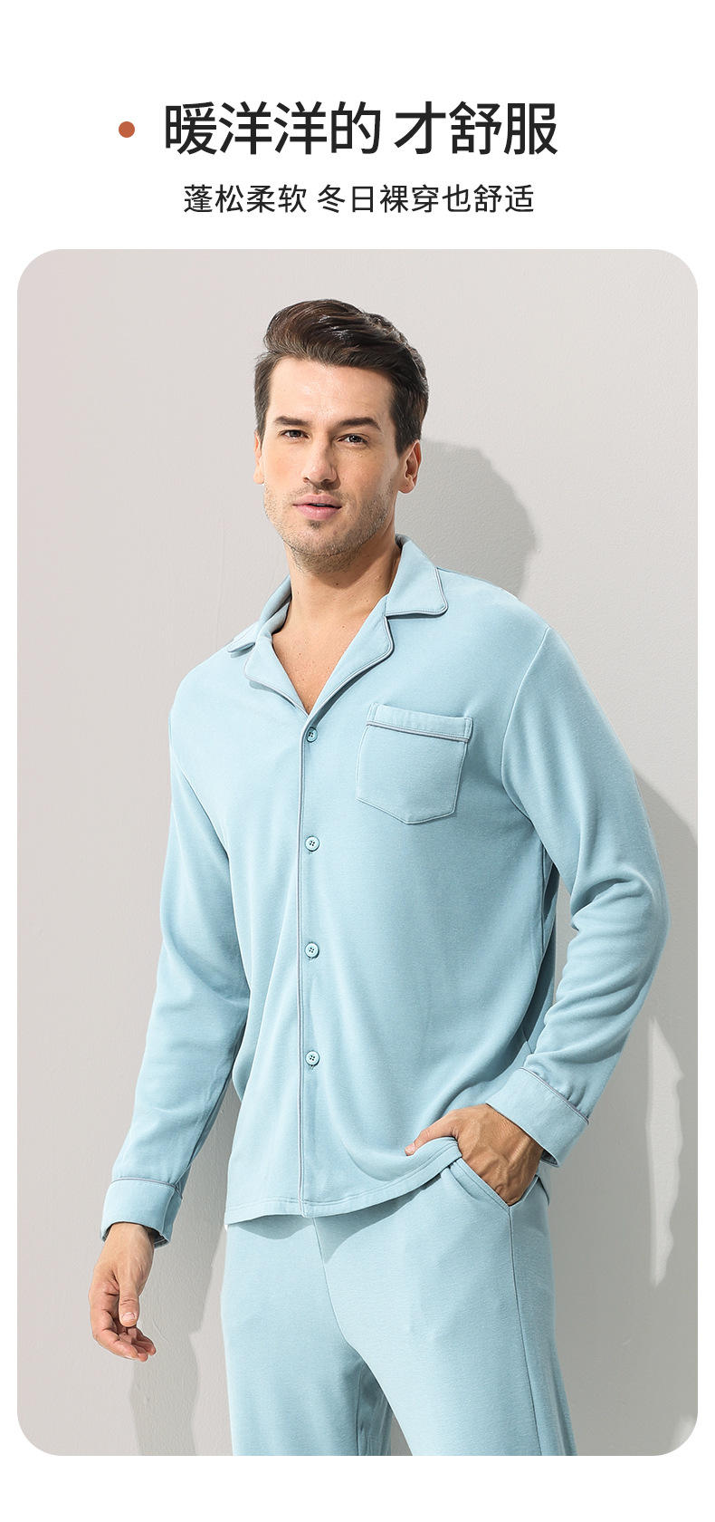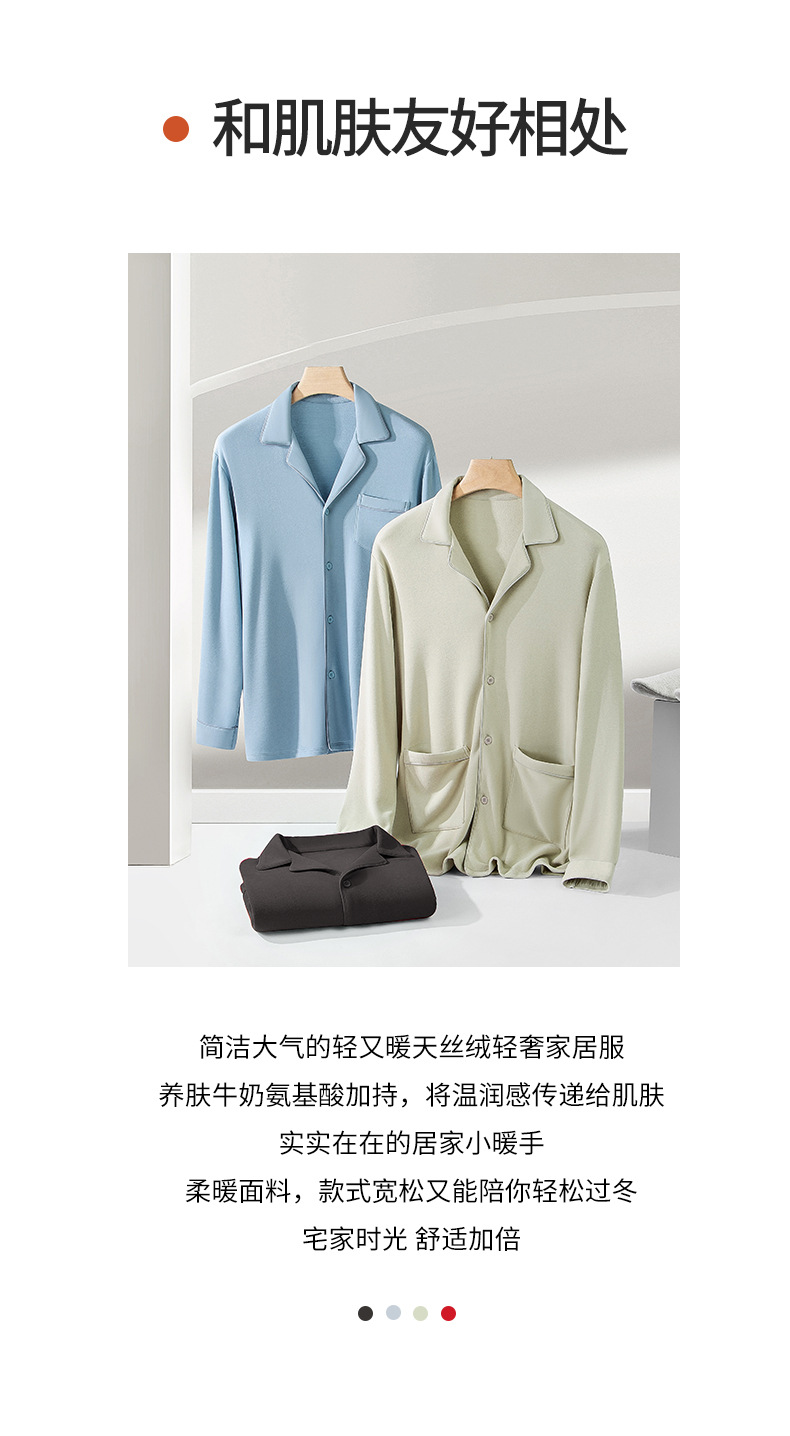 럭셔리 그레이드 텐셀 양면 양털 가을과 겨울 남성 가디건 긴팔 바지 아미노산 외출 가정 옷 잠옷 세트