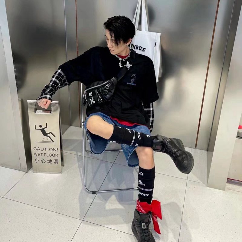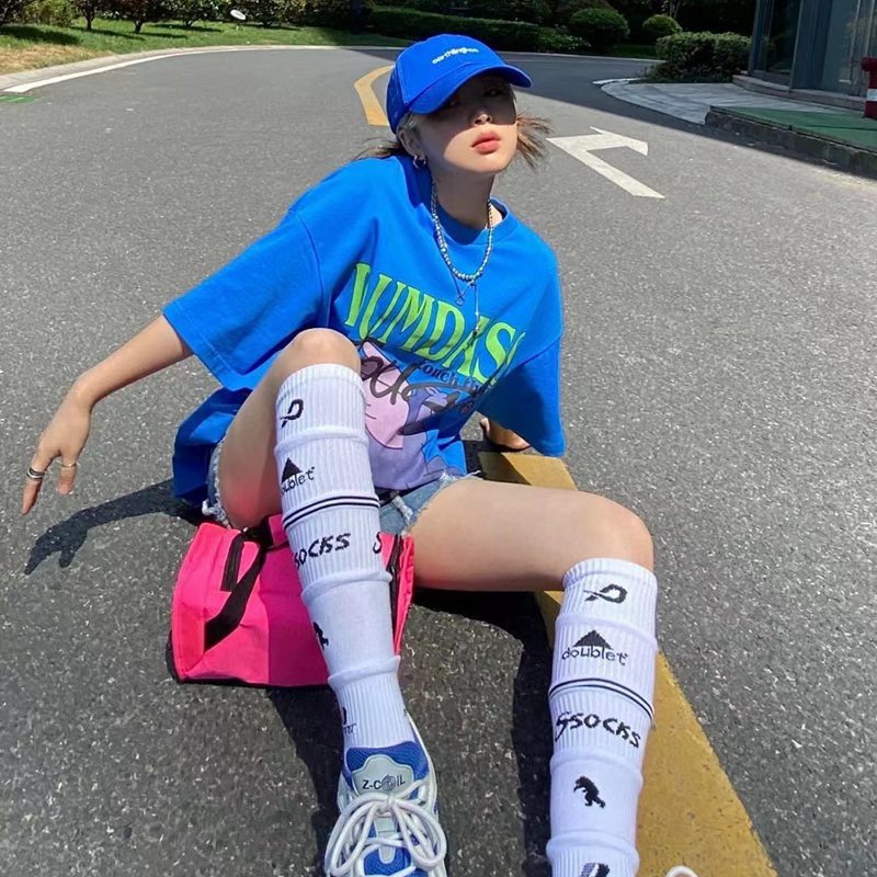 Doublet 멀티 레이어 디자인 여성 양말 코튼 롱 배럴 오버 네니 스포츠 슬리브 축구 스케이트 보드 남성용 트렌디 양말