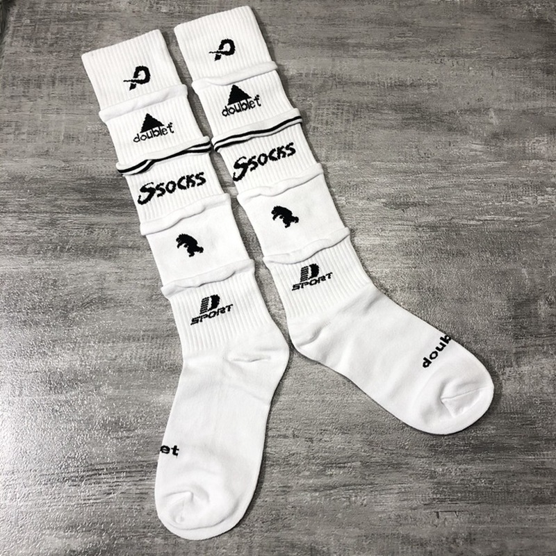 Doublet 멀티 레이어 디자인 여성 양말 코튼 롱 배럴 오버 네니 스포츠 슬리브 축구 스케이트 보드 남성용 트렌디 양말스토어 가기