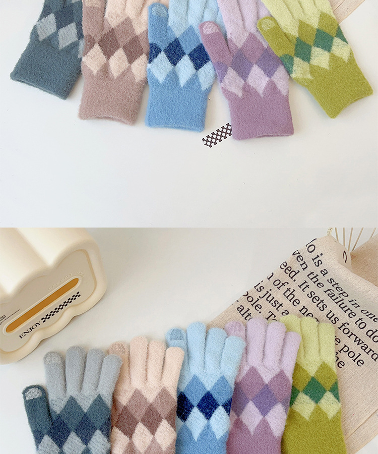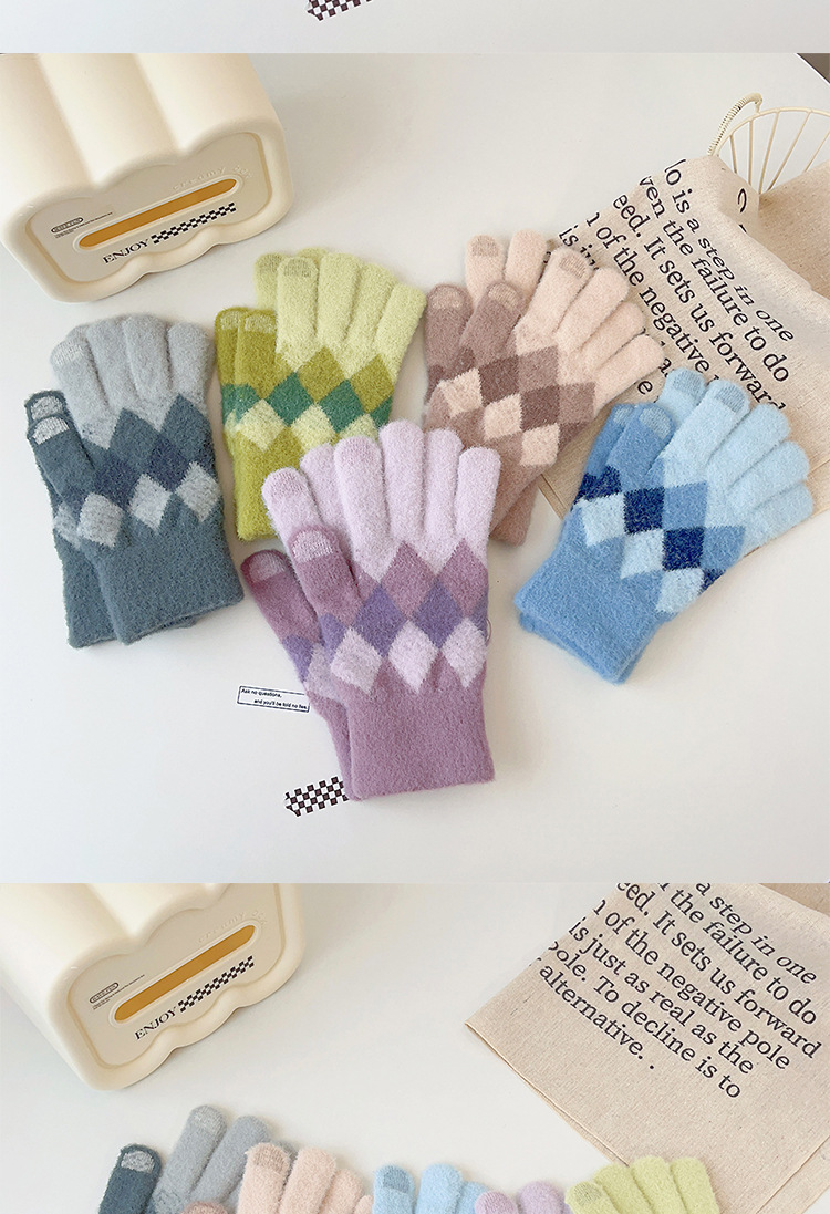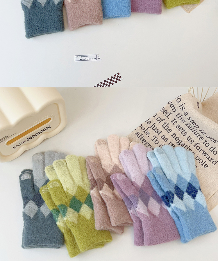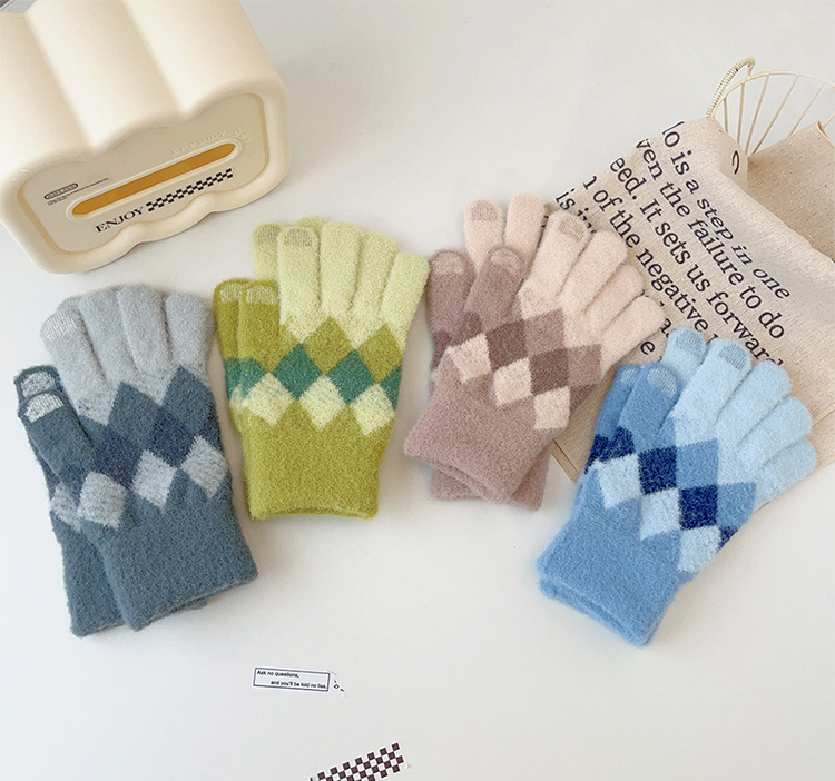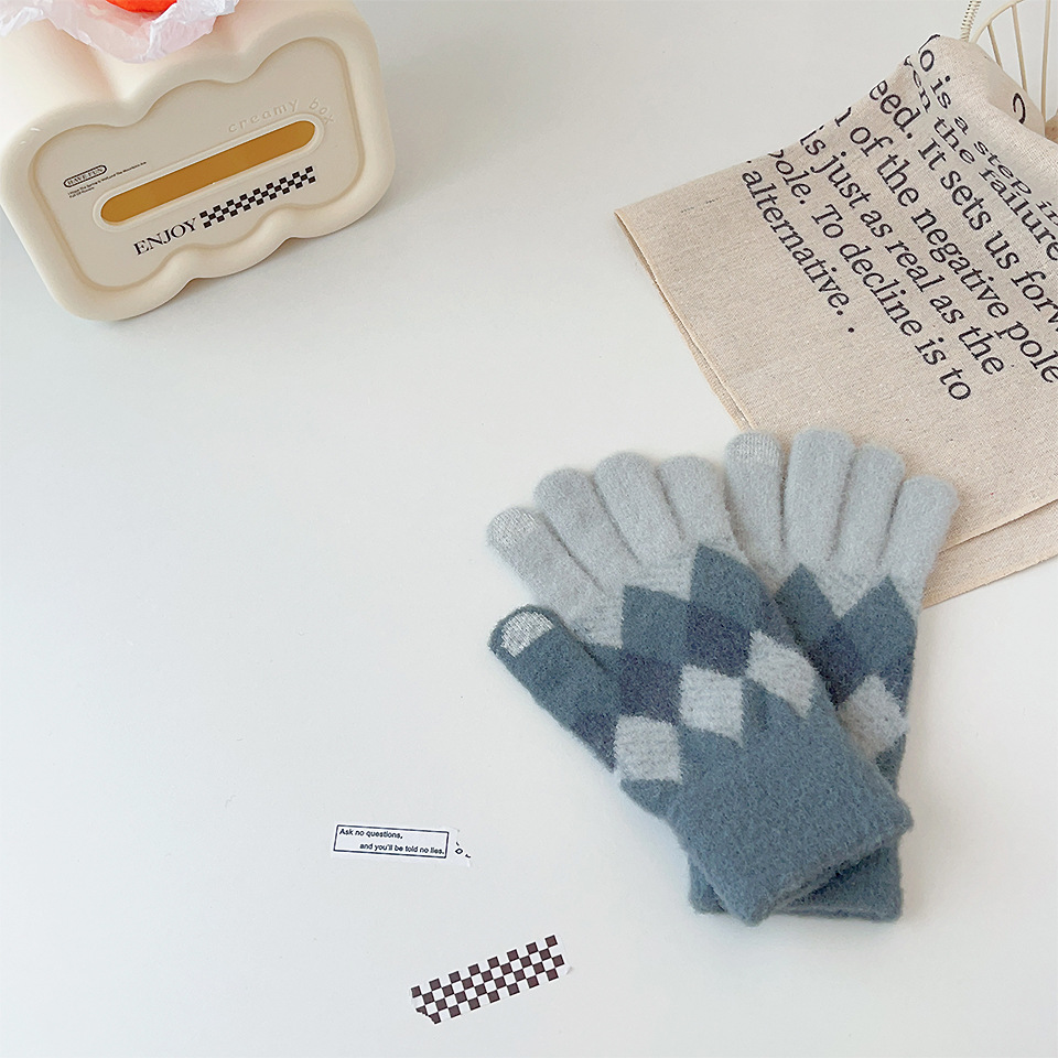 그라디언트 한국 동대문 성인 니트 장갑 여자의 겨울 방한 두꺼운 터치 스크린 승마 전체 손가락 필링