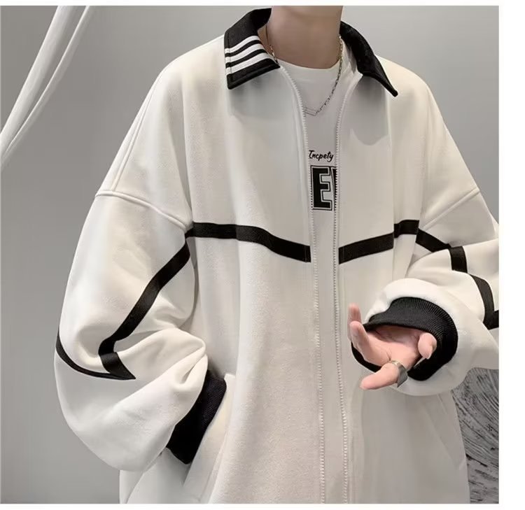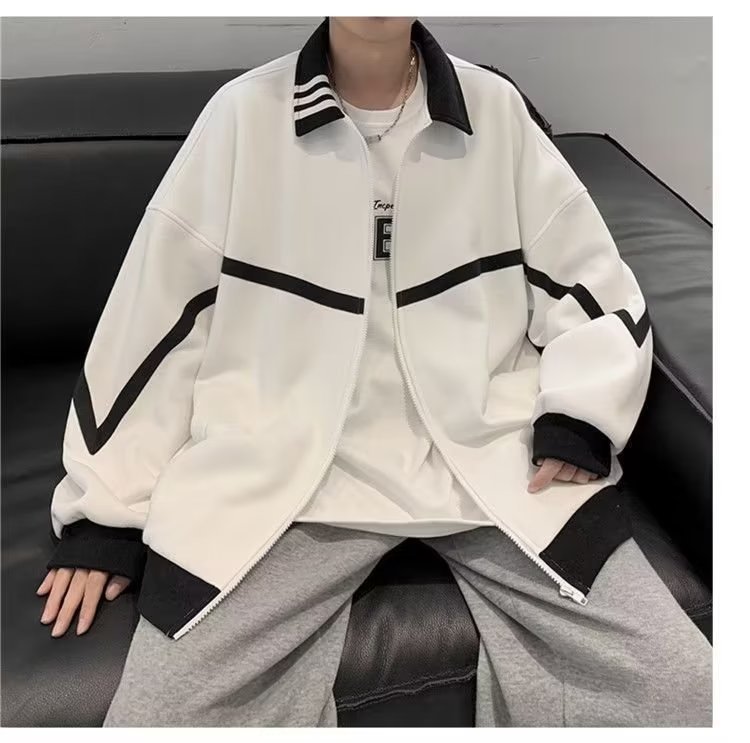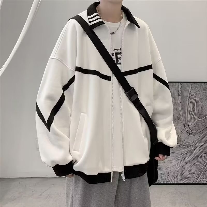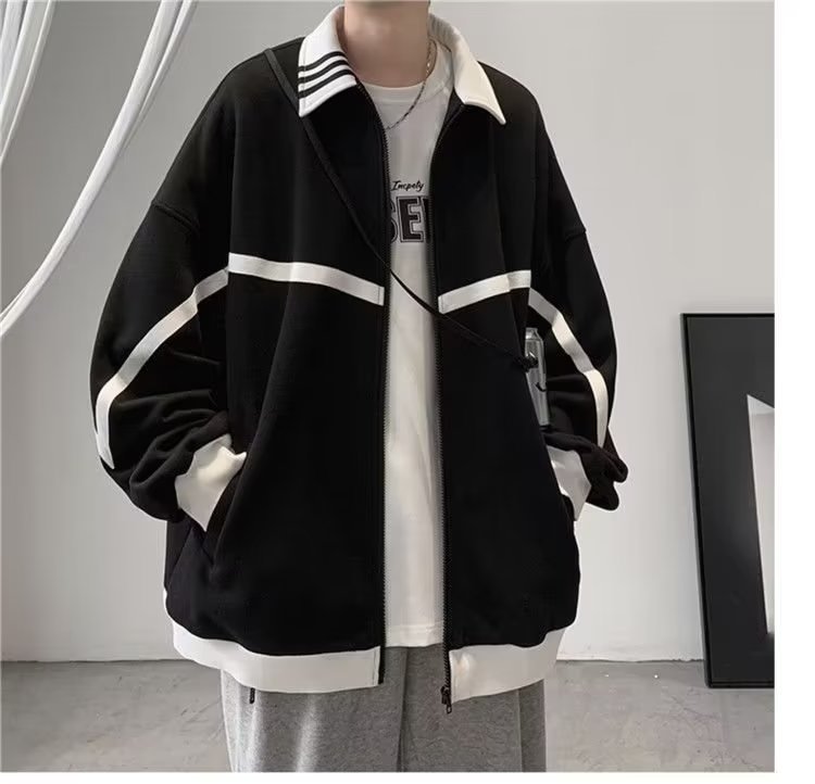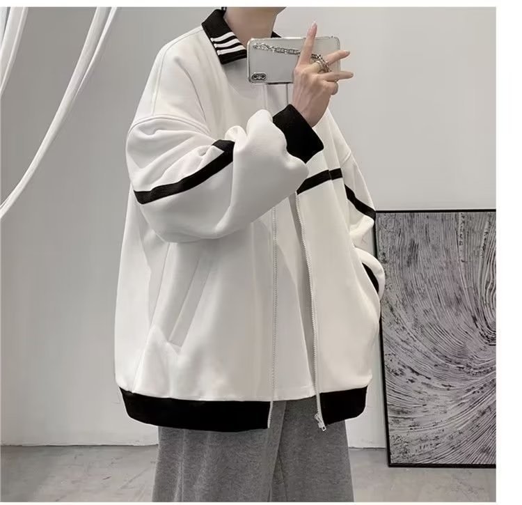 분위기 아메리칸 스타일 재킷 남자의 유행 가을 스티치 스트라이프 Ruffian 잘 생긴 재킷 얇은 특대 야구 세트스토어 가기