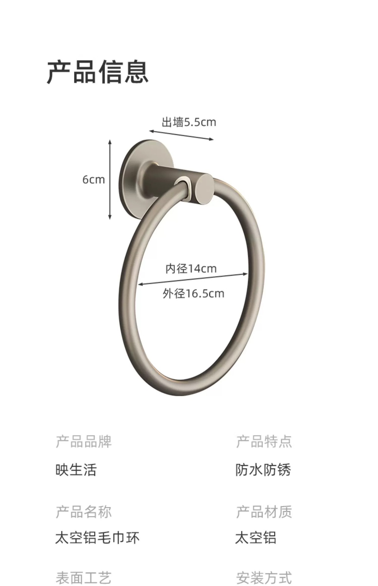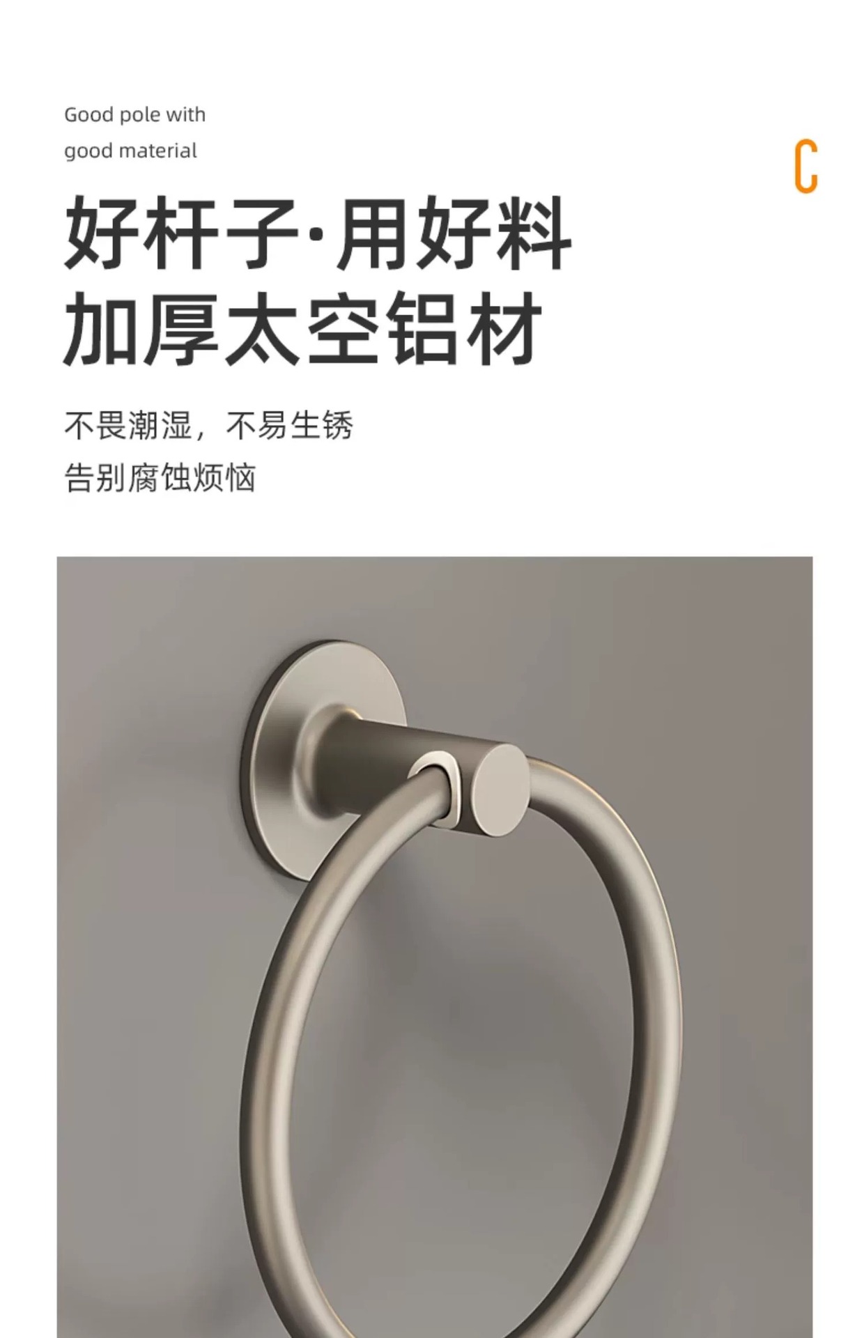 건 그레이 심플 타월 링 천공되지 않은 욕실 타월 걸이 공간 알루미늄 링 걸이 링 화장실 타월 링스토어 가기