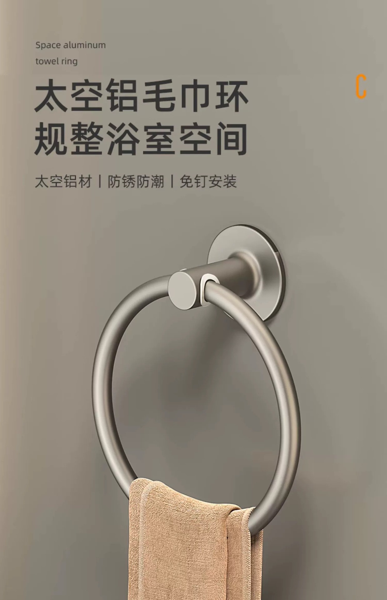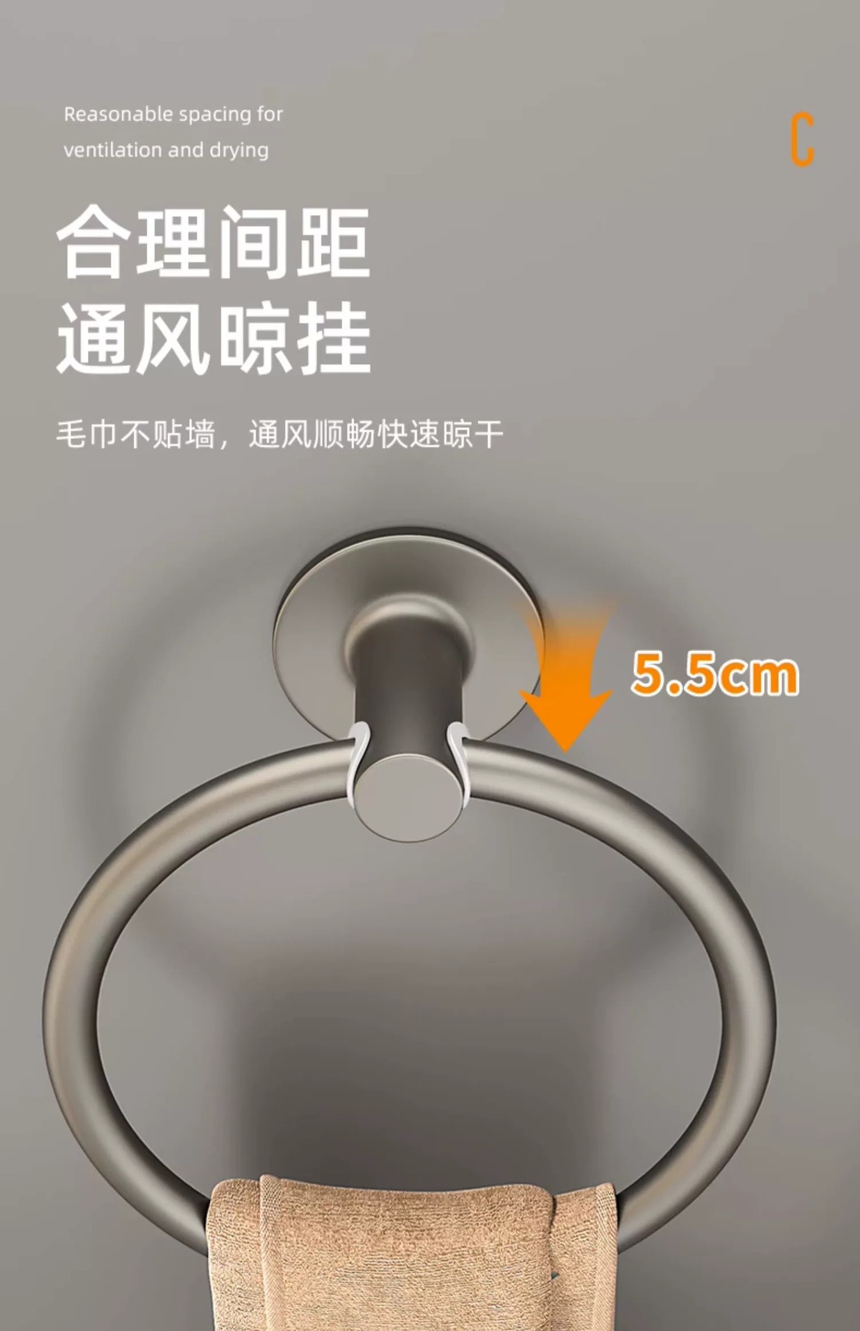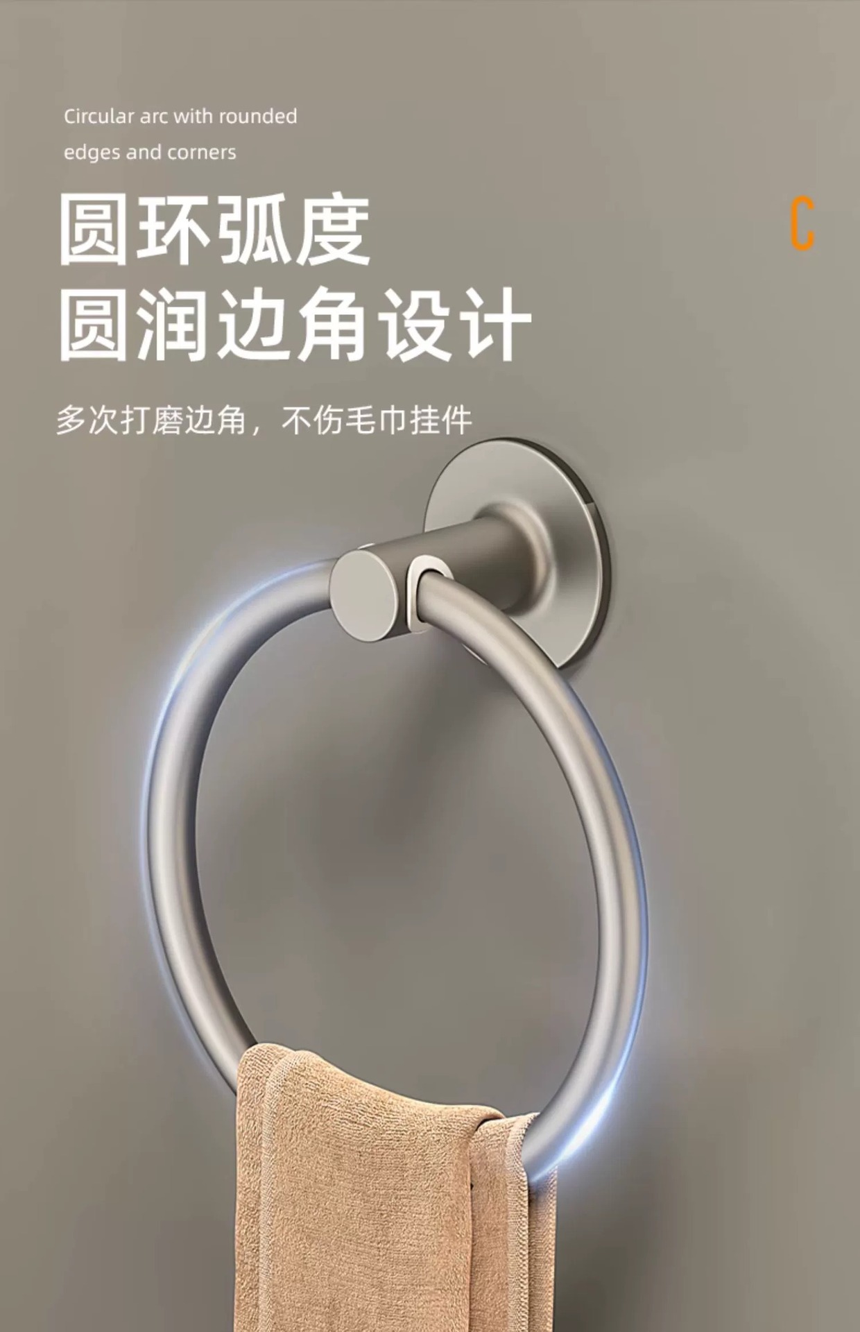 건 그레이 심플 타월 링 천공되지 않은 욕실 타월 걸이 공간 알루미늄 링 걸이 링 화장실 타월 링