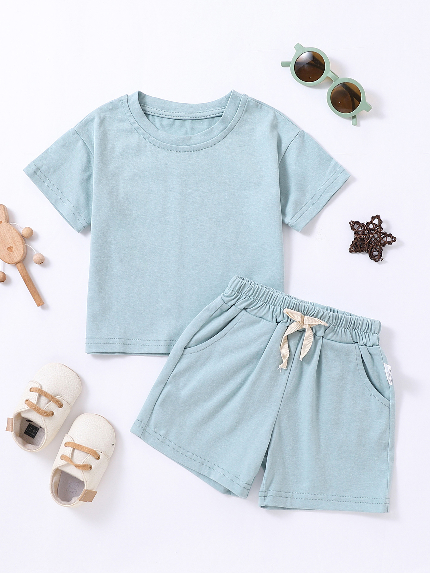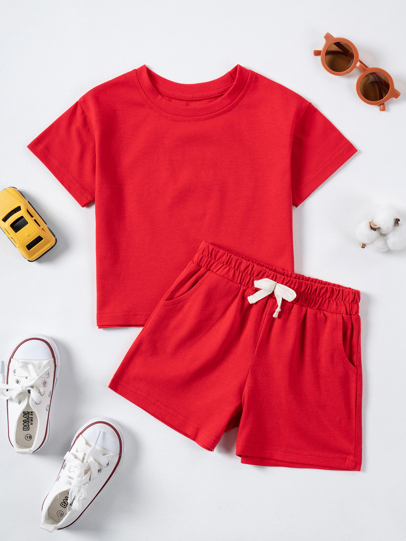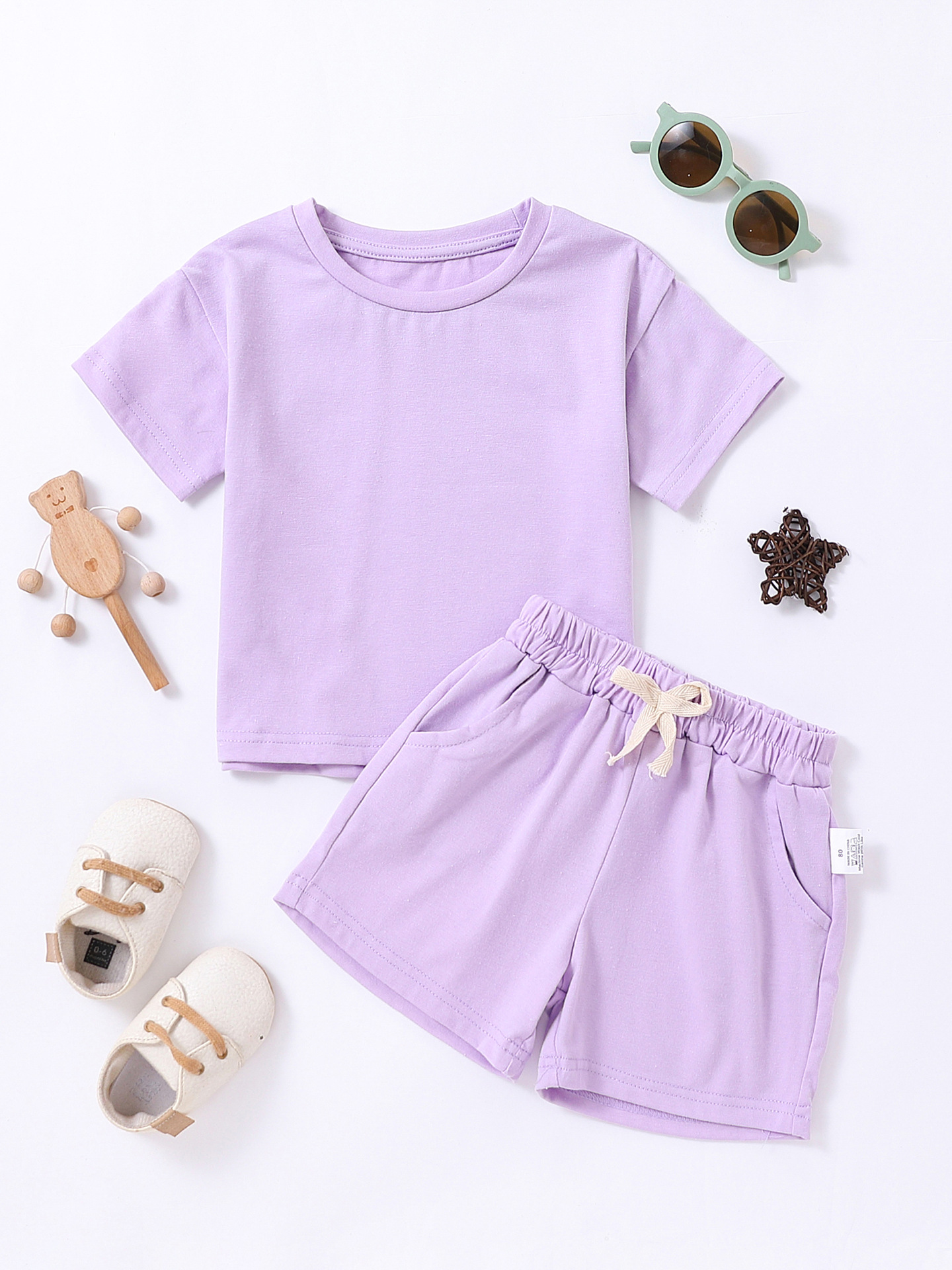 Label Size 100, age 2-3 years old. Top length 40 cm, bust 66 cm, pants length 29 cm, hip 68 cm.