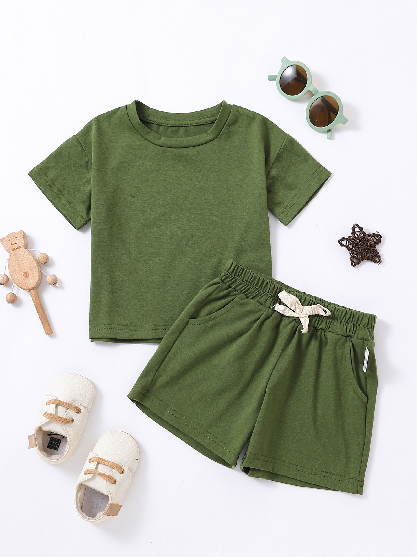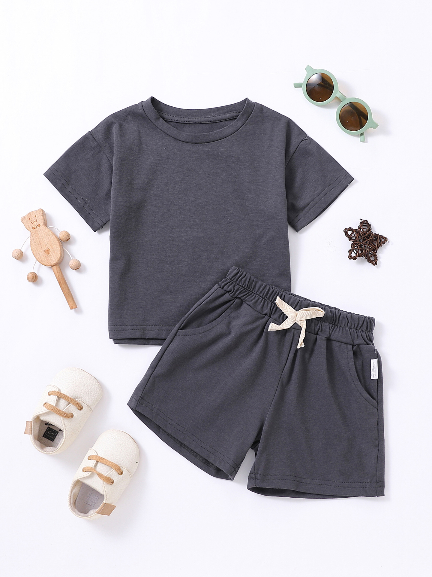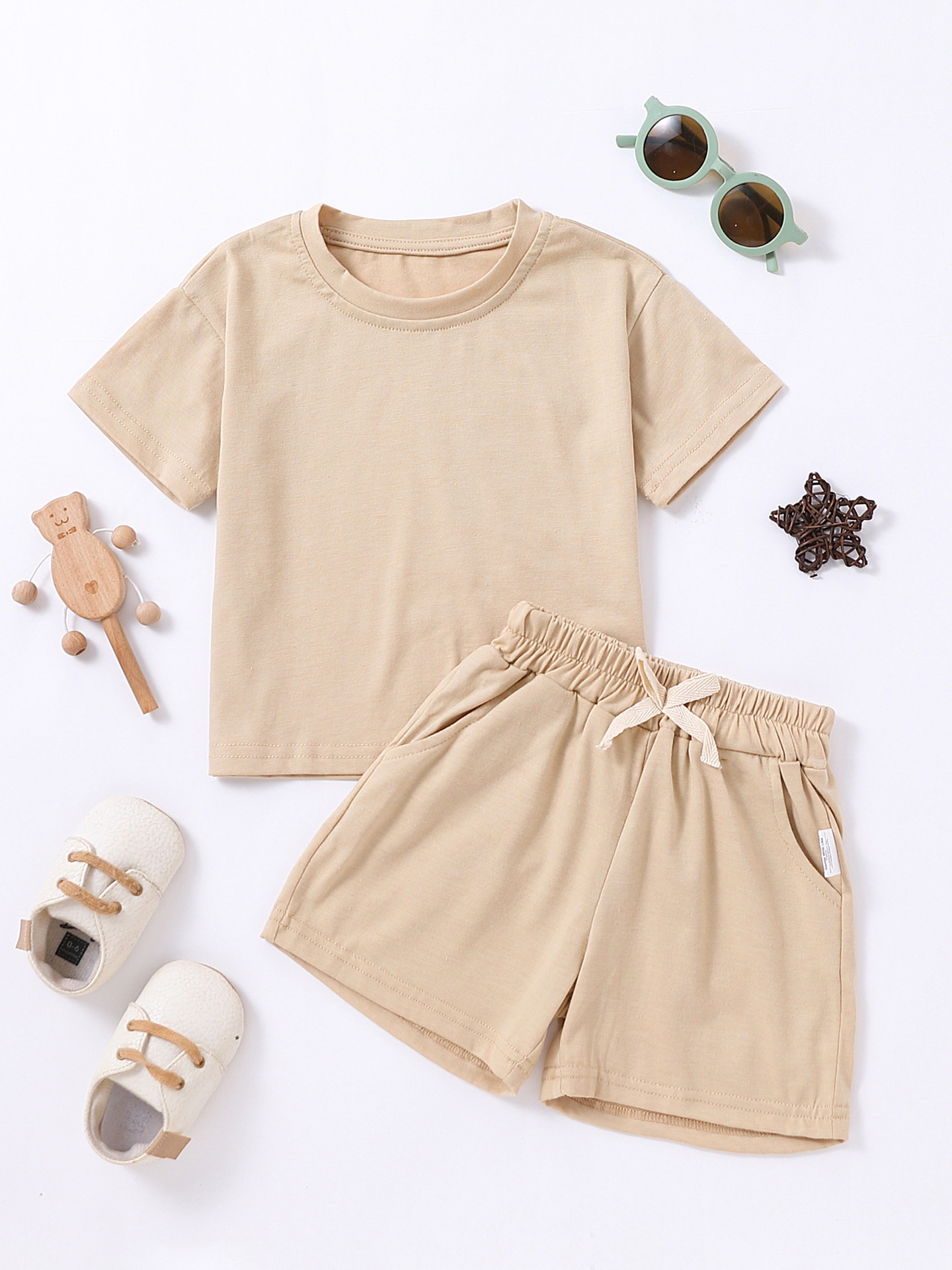 Label Size 100, age 2-3 years old. Top length 40 cm, bust 66 cm, pants length 29 cm, hip 68 cm.