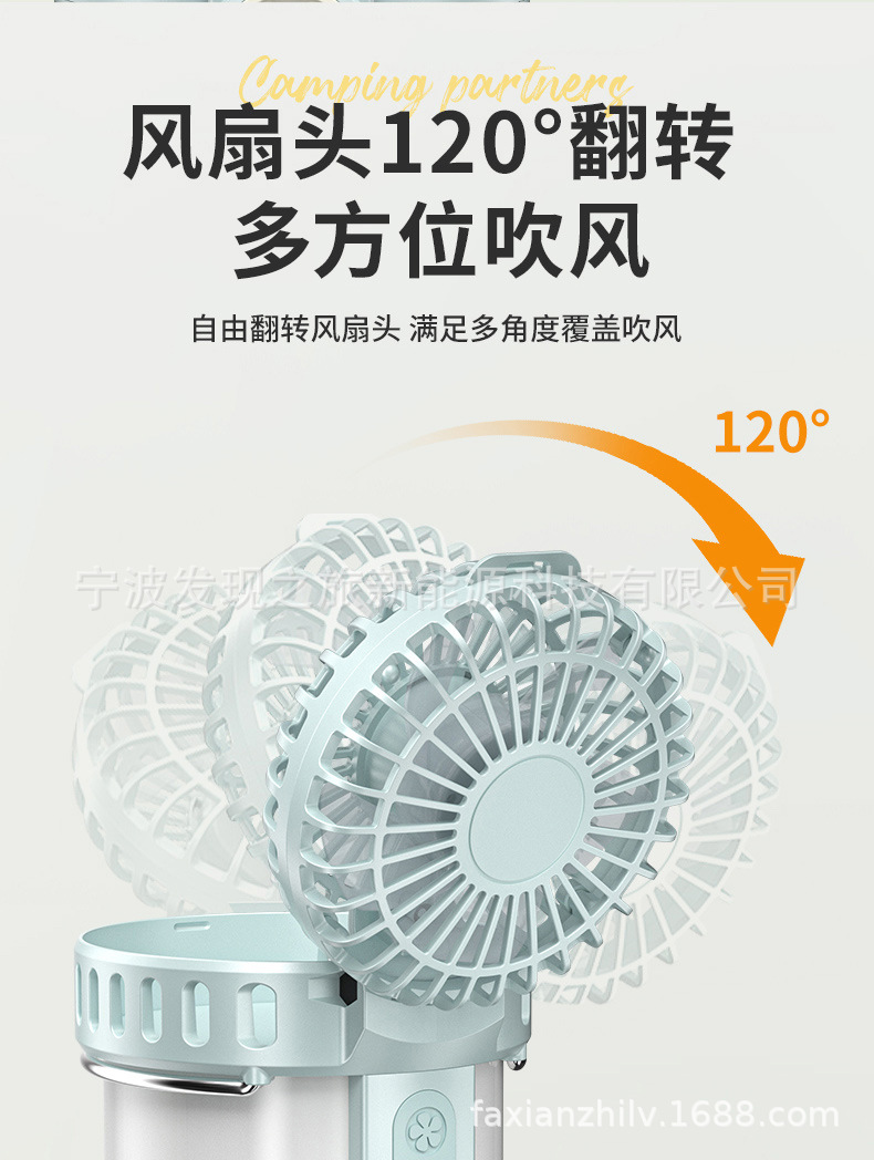 续航时间 前灯强光9h-弱光14h-爆闪; 侧灯白光10h-暖光10h-氛围光5h-烛光模式5h; 风扇低档11h-中档7.5h-高档风5h