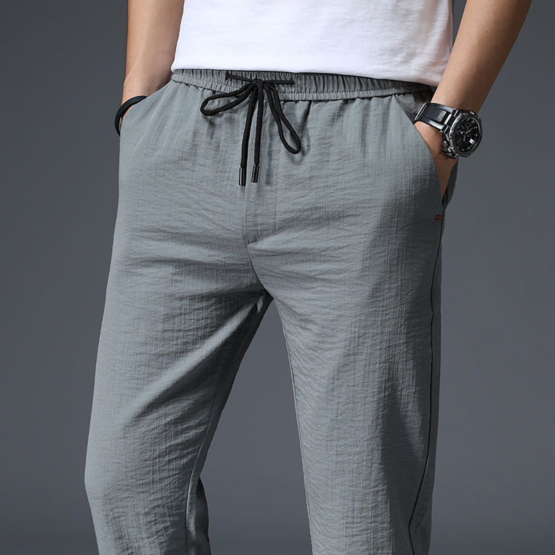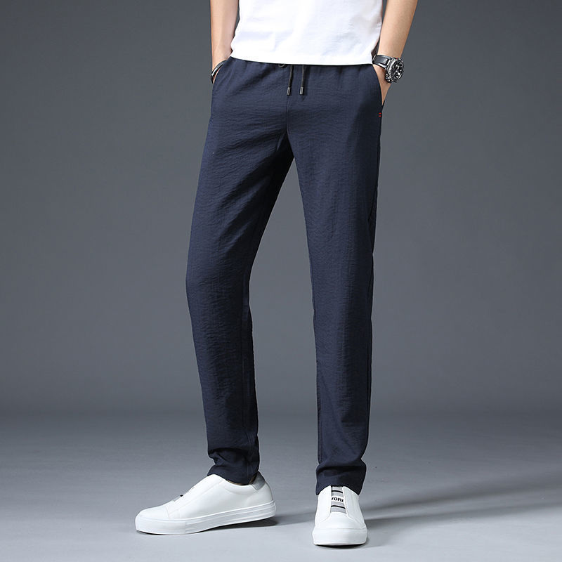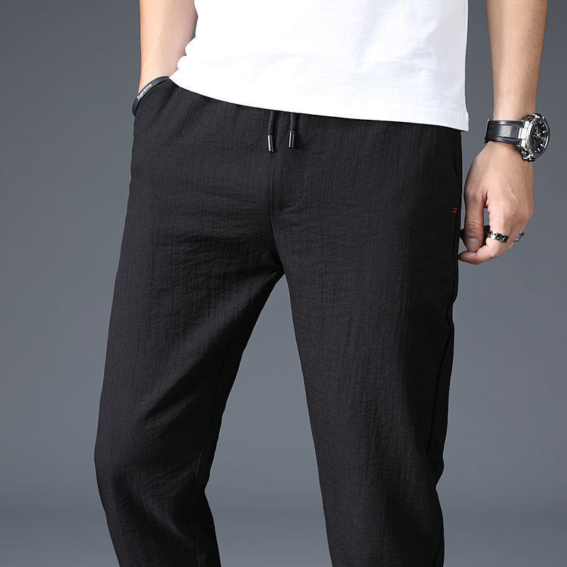 아이스 실크 바지 남성용 2023 여름 얇은 플러스 사이즈 캐주얼 스트레이트 통기성 속건 발목 길이 바지 남성용 스포츠 바지스토어 가기
