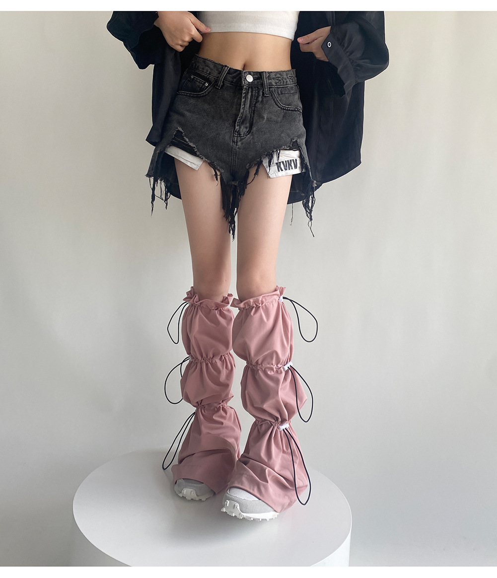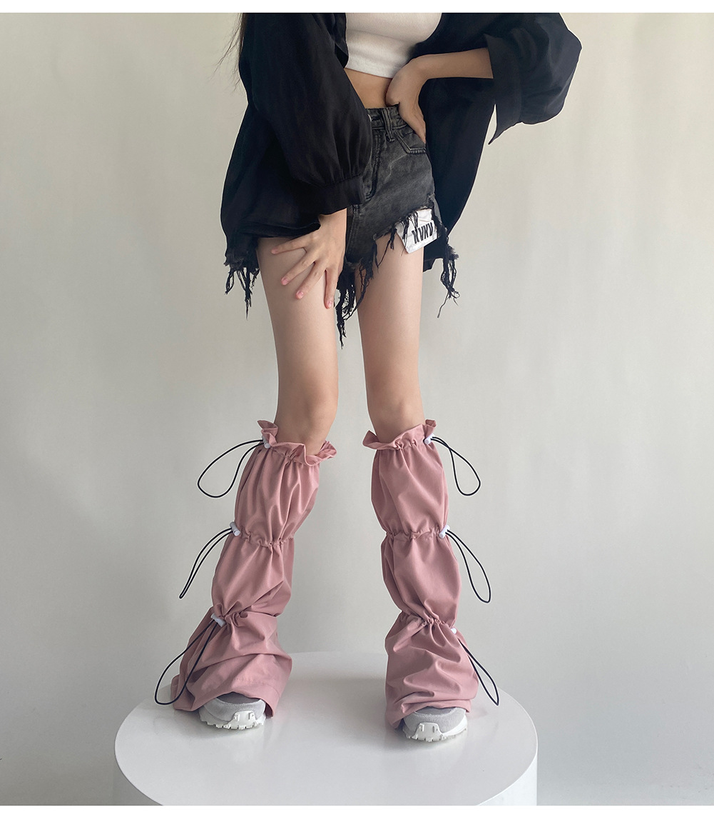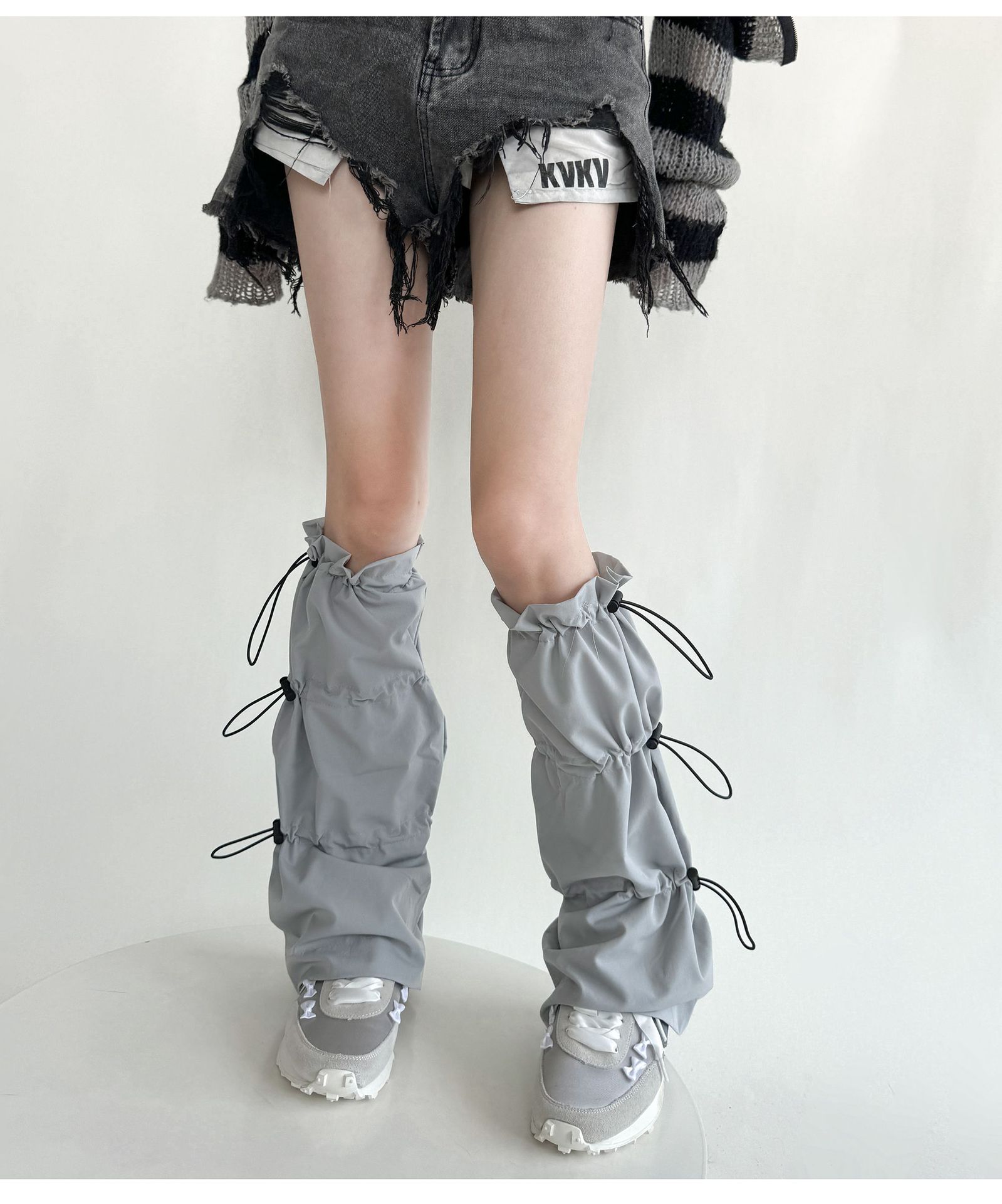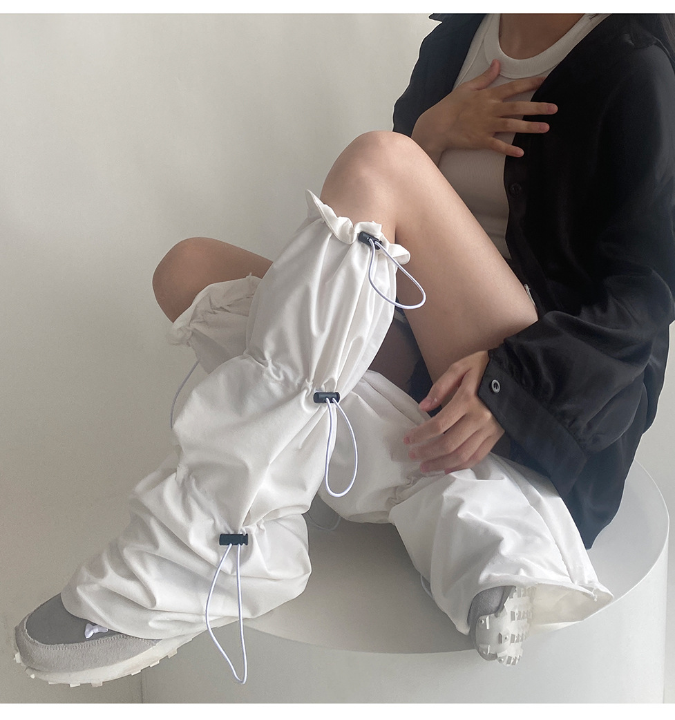 흰색 양말 Y2K 개인화 된 졸라매는 끈 디자인 다리 슬리브 슬리밍 툴링 스타일 느슨한 스택 높은 실린더 일본 jk 부츠