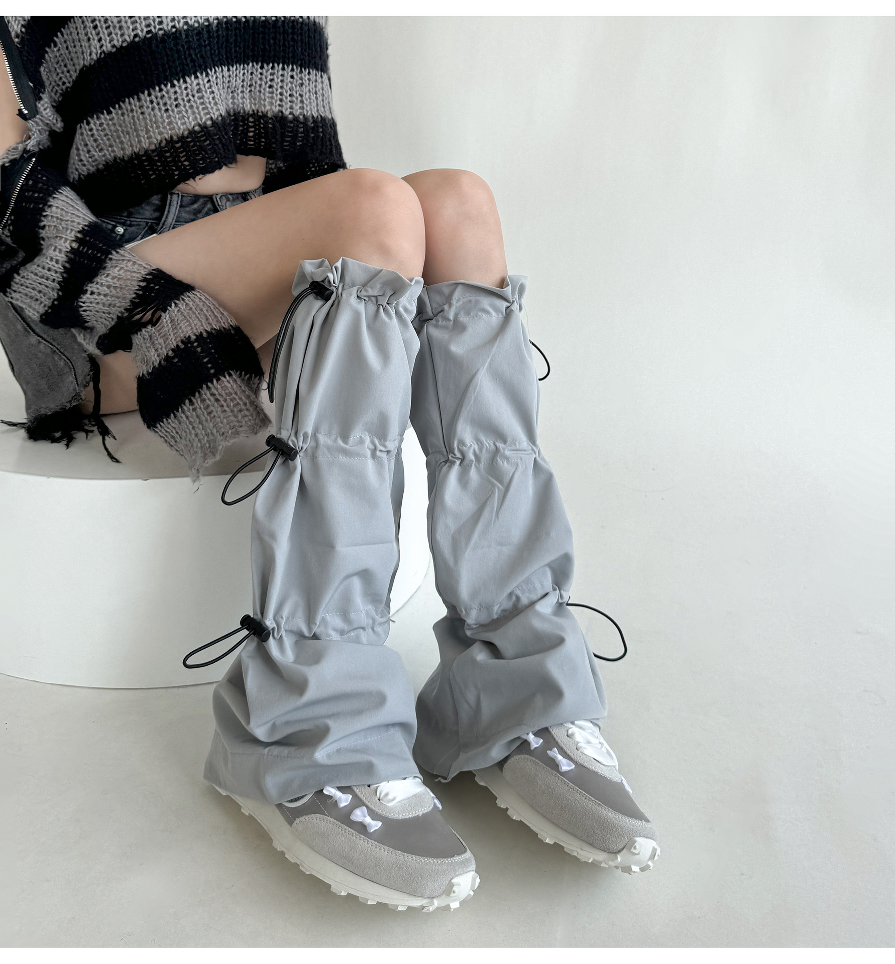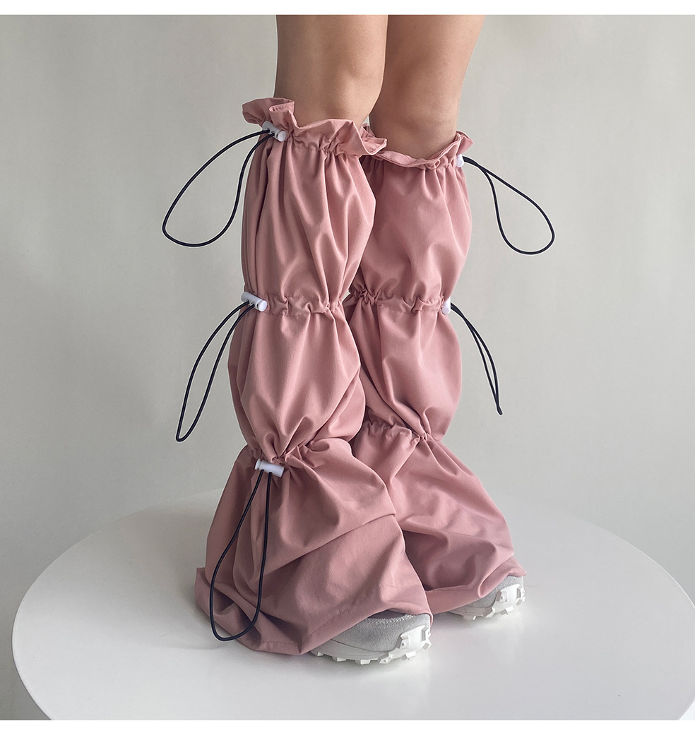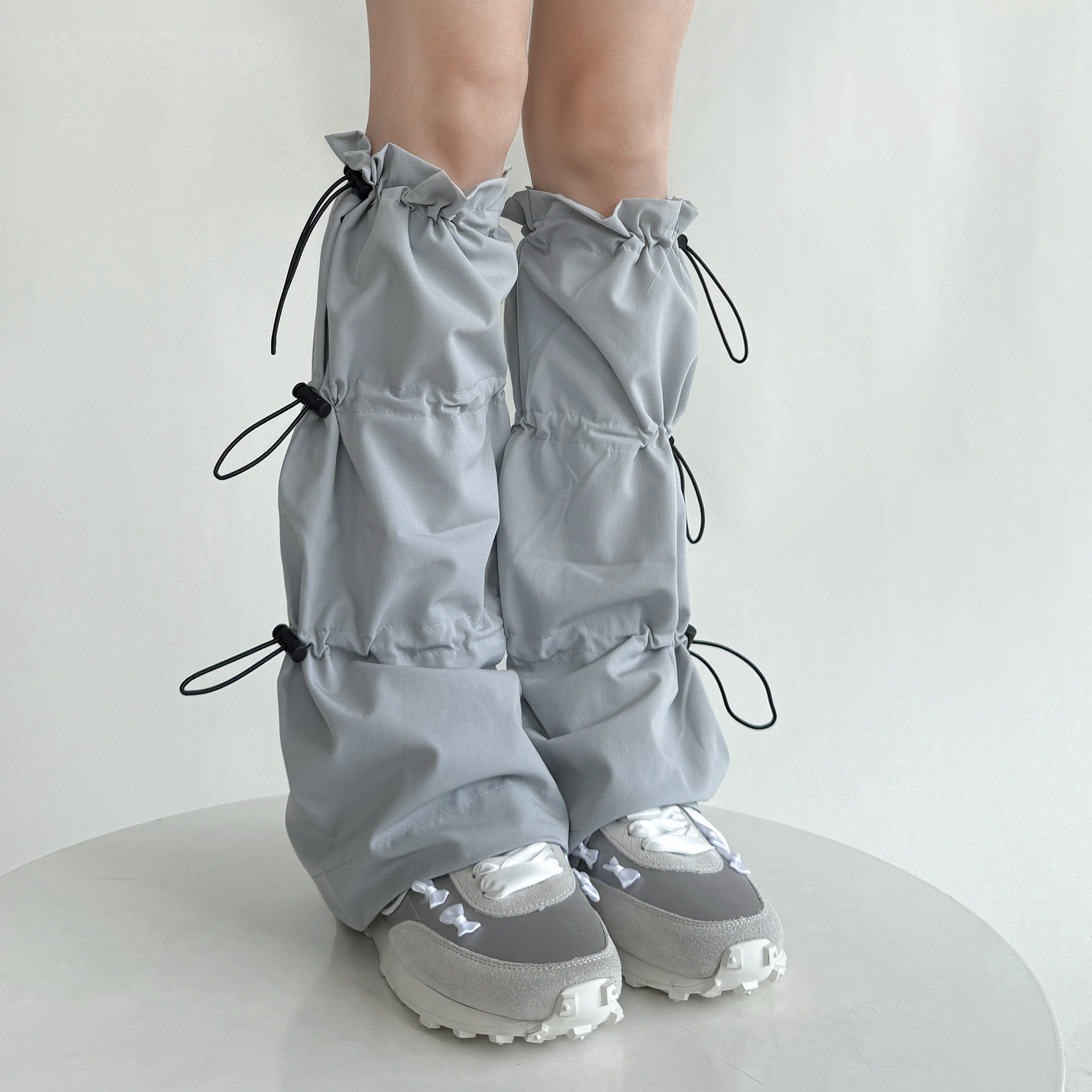 흰색 양말 Y2K 개인화 된 졸라매는 끈 디자인 다리 슬리브 슬리밍 툴링 스타일 느슨한 스택 높은 실린더 일본 jk 부츠