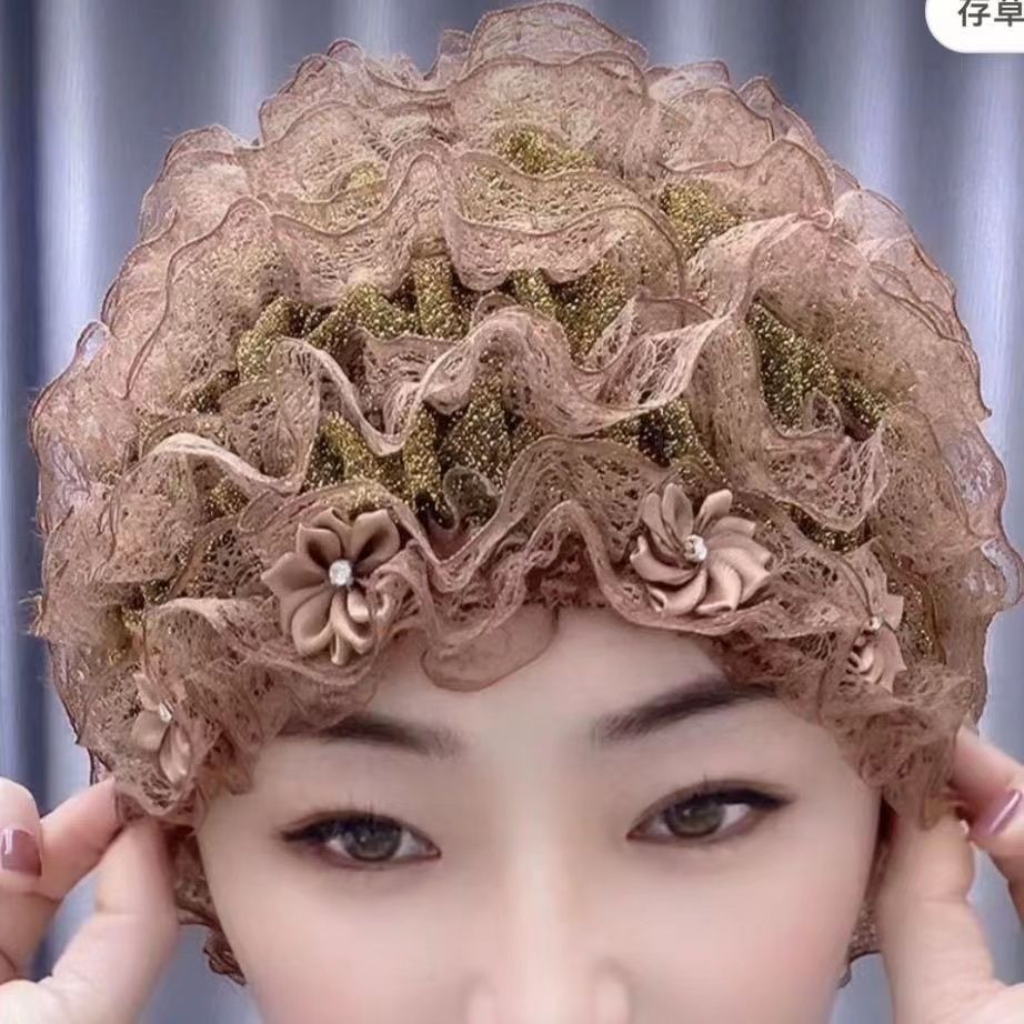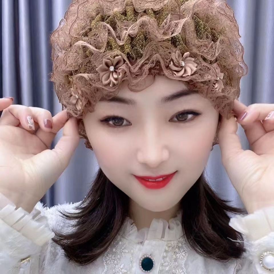 사계절 작은 꽃 모자 커버 흰 머리 모자 레이스 모자 패션 홈 모자 사이클링 방풍 모자 대머리 모자스토어 가기