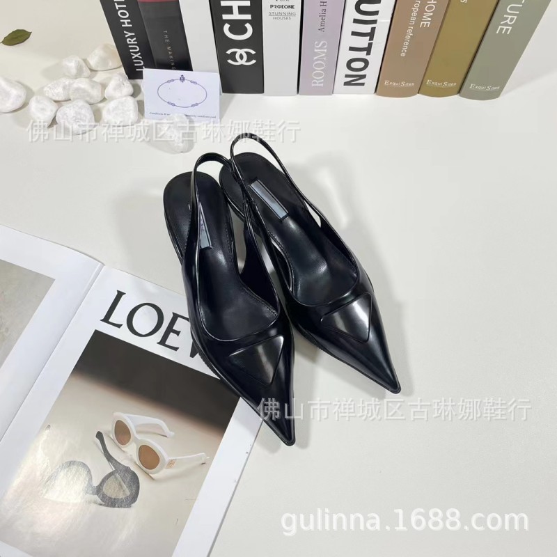 요정 스타일 여름 삼각형 스타일 Baotou 고양이 발 뒤꿈치와 블랙 샌들 뾰족한 발가락 유행 프랑스 하이힐
