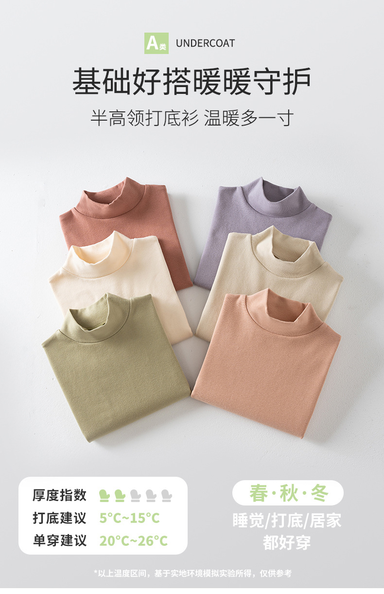 가을과 겨울 아동베이스 셔츠 두꺼운 따뜻한 하프 하이 칼라 탑 여아 브러시 면 긴팔 모란디 티셔츠스토어 가기
