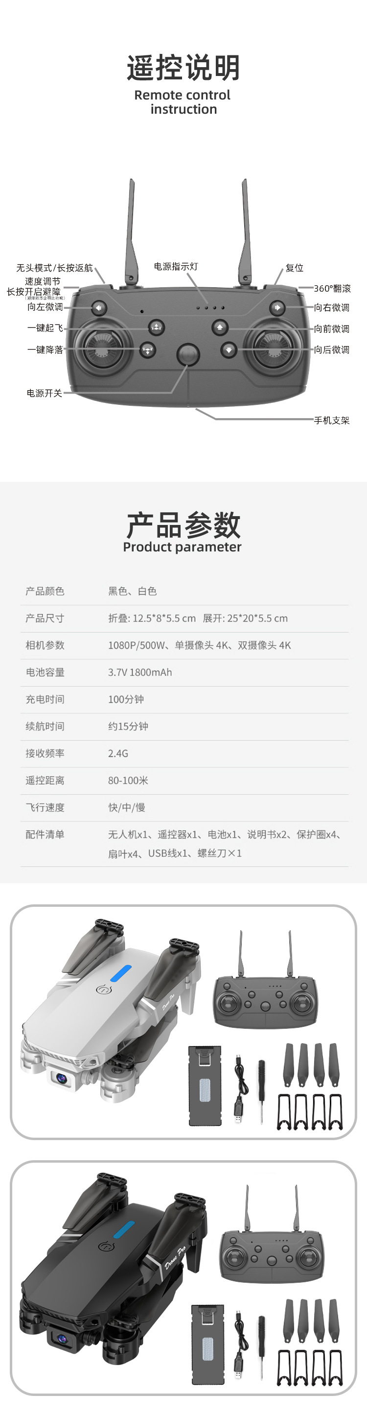 국경 간 E88 UAV HD 4K 항공 사진 항공기 4 축 모델 E99 고정 높이 원격 제어 항공기 e525스토어 가기