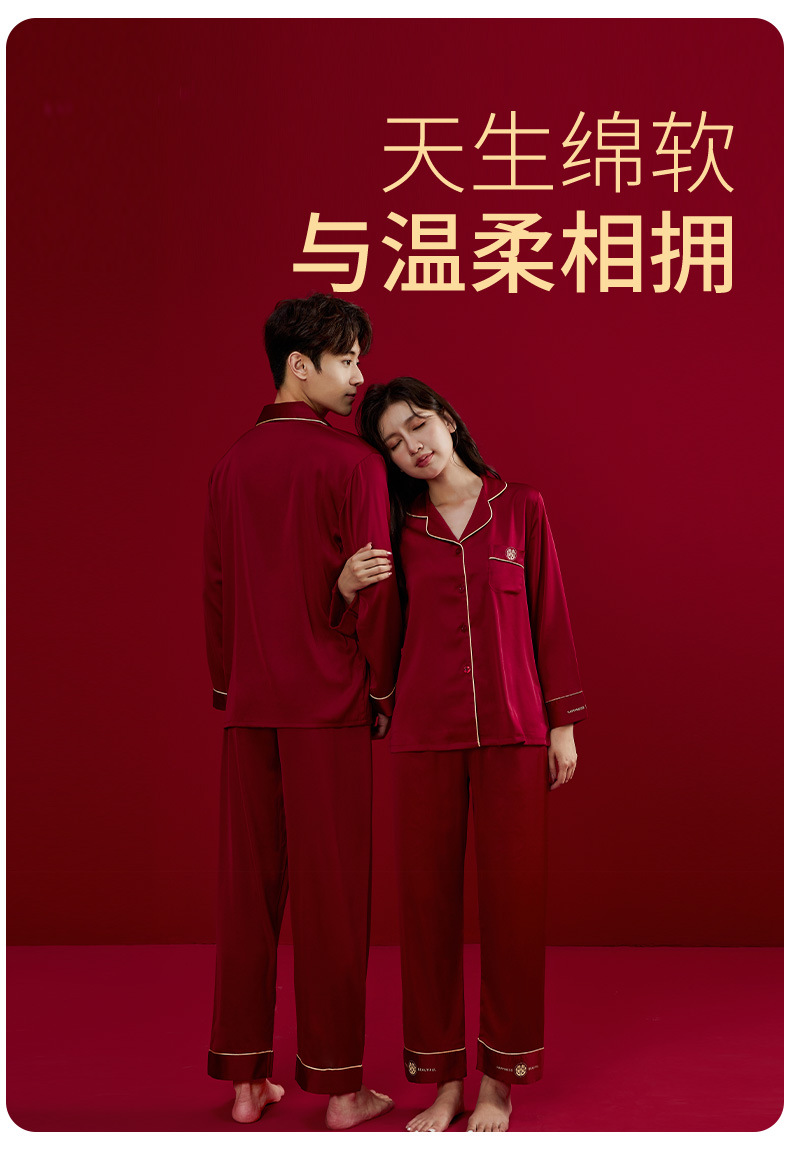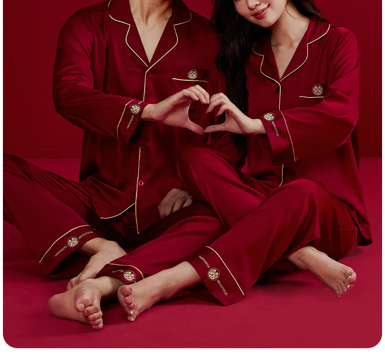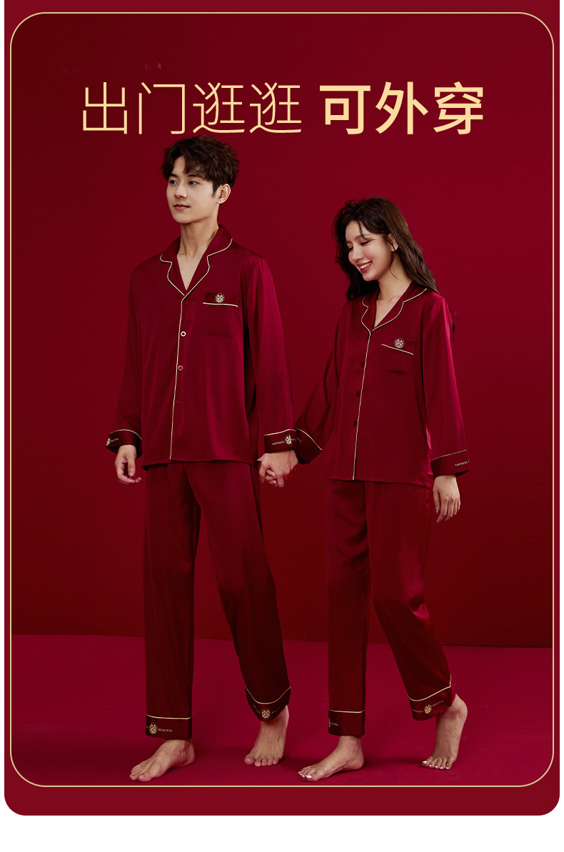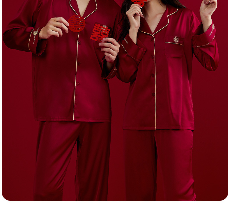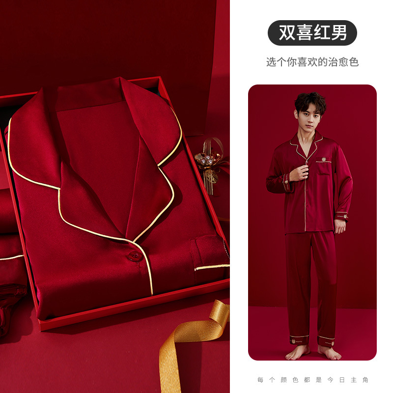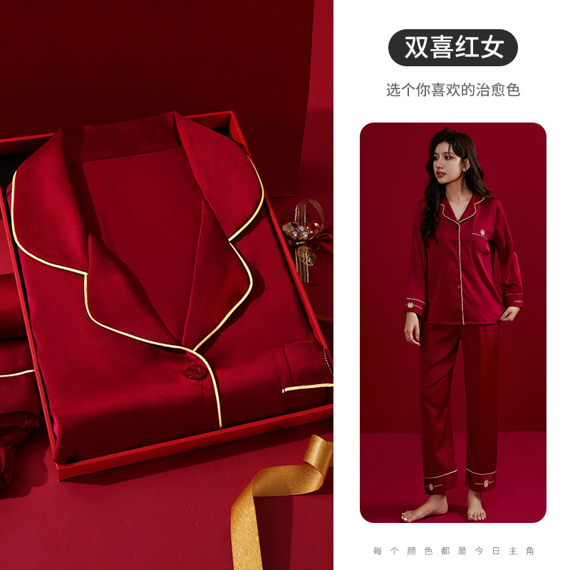 웨딩 잠옷 여자의 가을 여자의 잠옷 가정 옷 빨간 결혼식 잠옷 두 배 행복 인쇄 고급 커플 잠옷