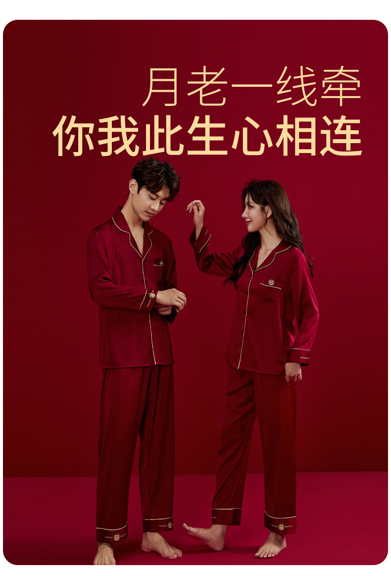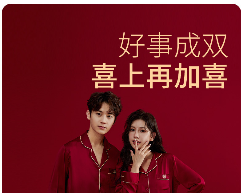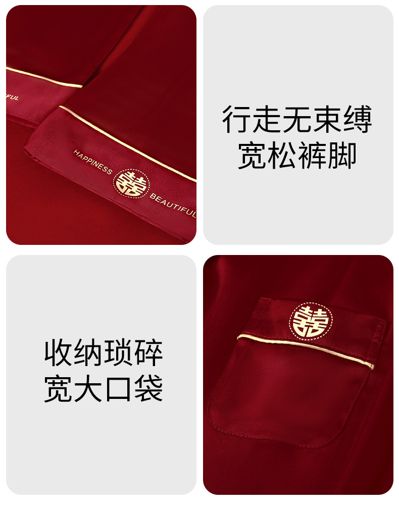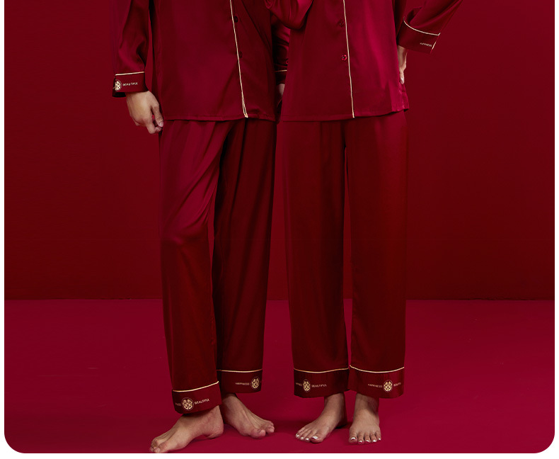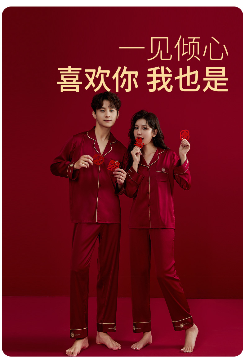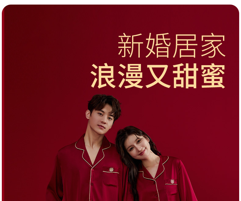 웨딩 잠옷 여자의 가을 여자의 잠옷 가정 옷 빨간 결혼식 잠옷 두 배 행복 인쇄 고급 커플 잠옷