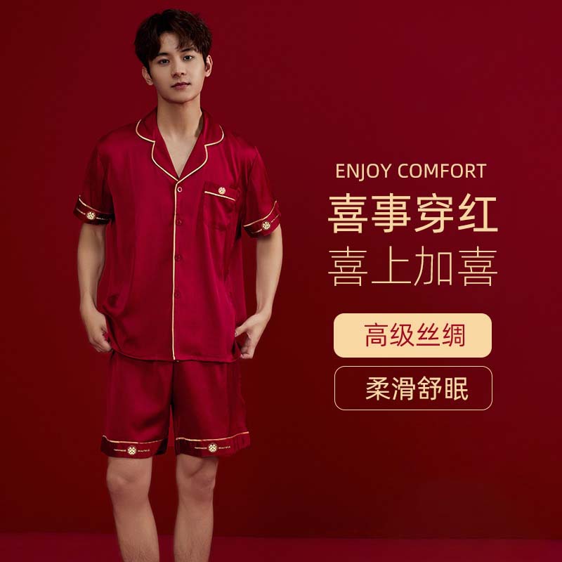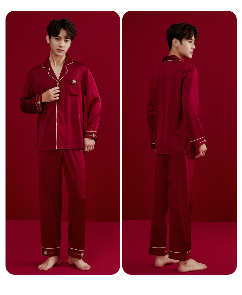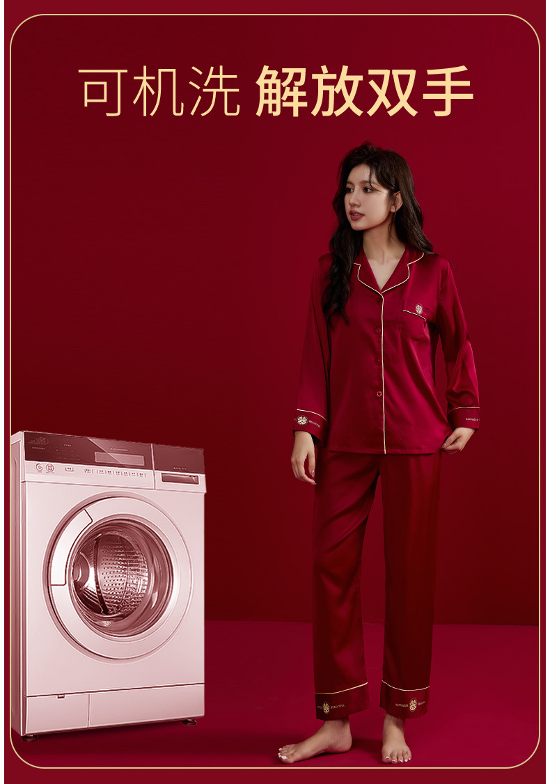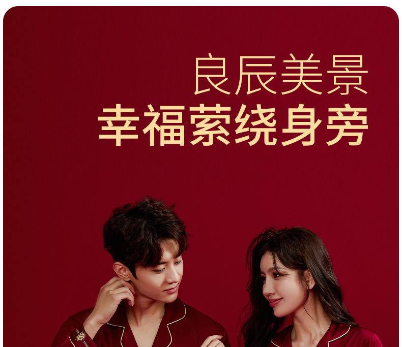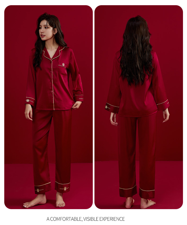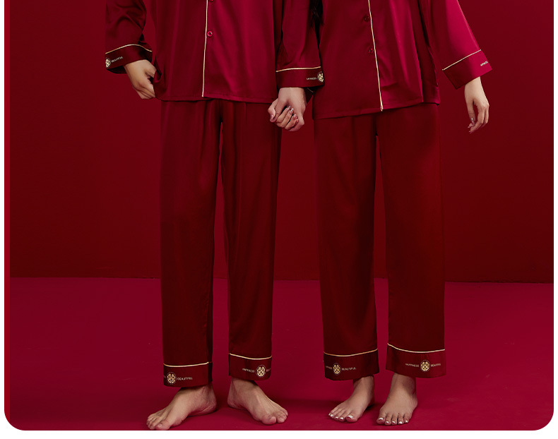 웨딩 잠옷 여자의 가을 여자의 잠옷 가정 옷 빨간 결혼식 잠옷 두 배 행복 인쇄 고급 커플 잠옷
