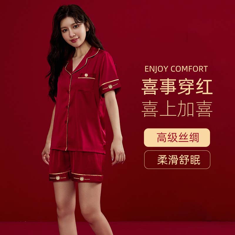 웨딩 잠옷 여자의 가을 여자의 잠옷 가정 옷 빨간 결혼식 잠옷 두 배 행복 인쇄 고급 커플 잠옷스토어 가기