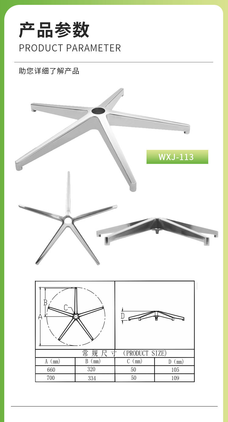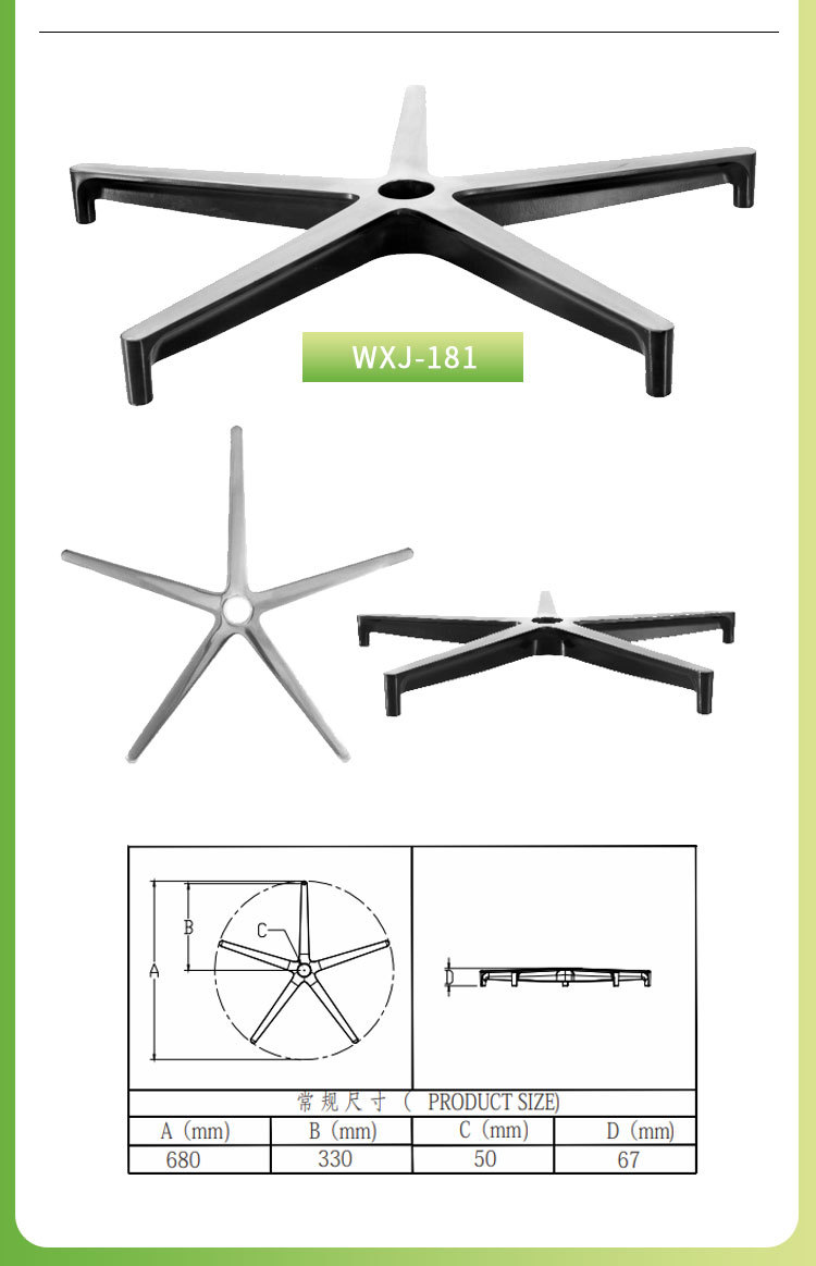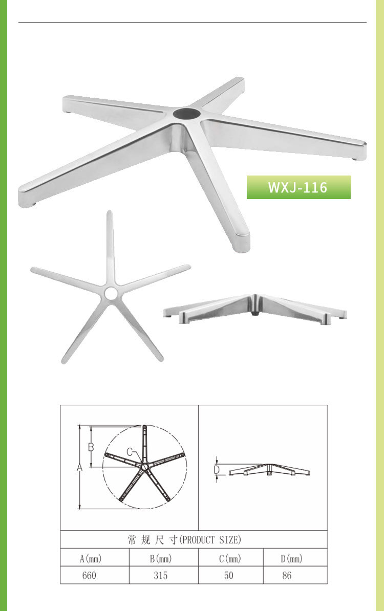 Shenghao 컴퓨터 의자 액세서리 의자 발 알루미늄 합금 5 성급 발 사무실 의자 알루미늄 합금 광택 5 발톱 발