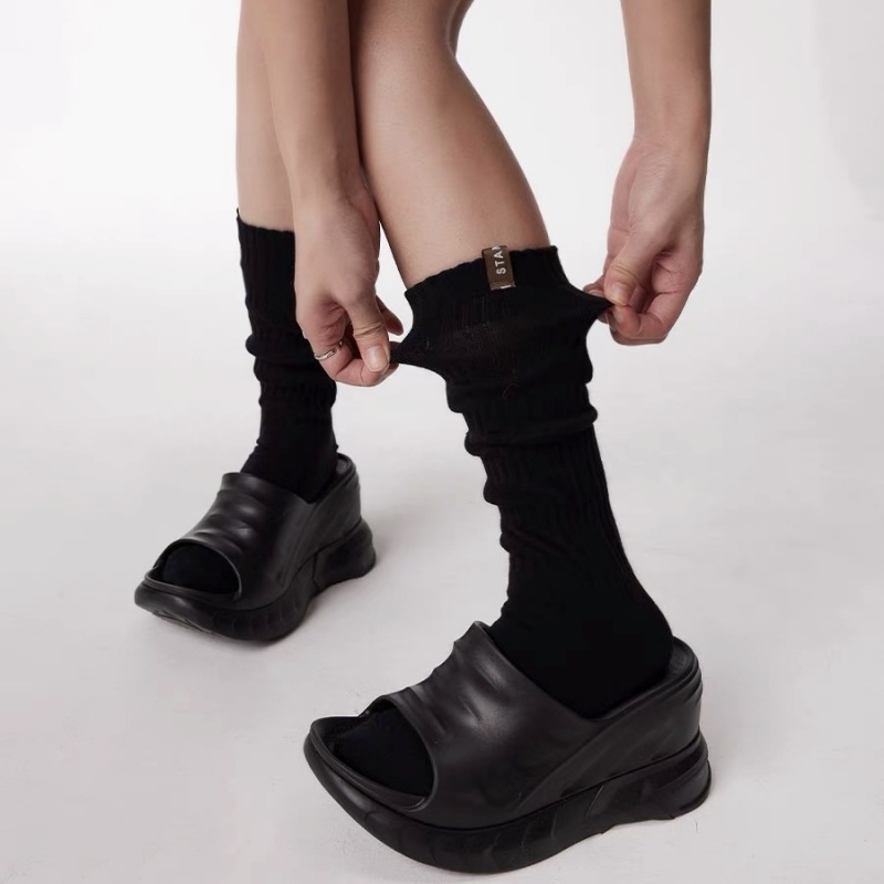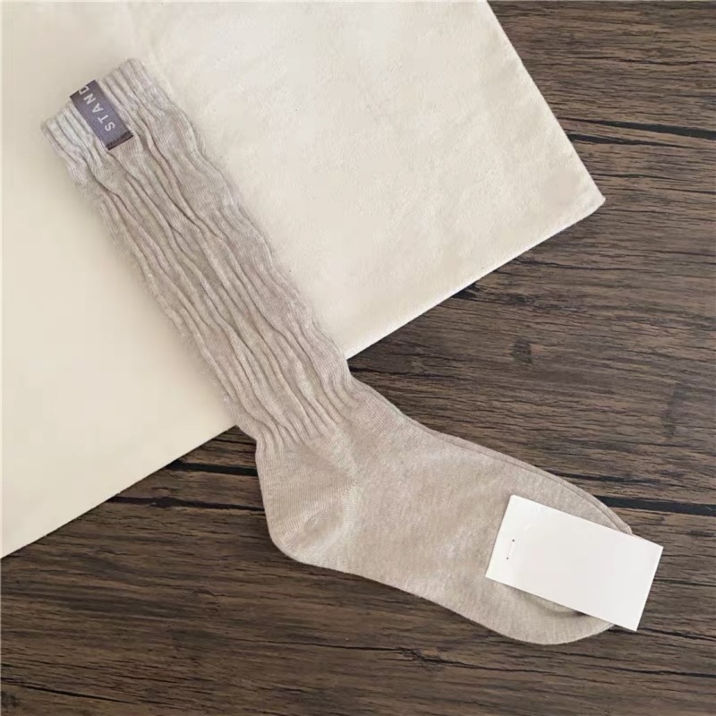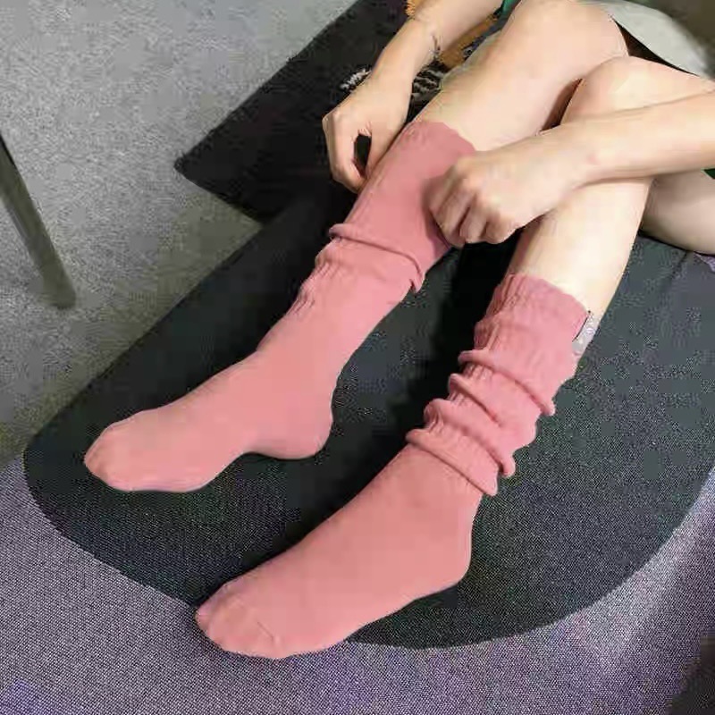 한국어 스타일 ins 스타일 라벨 더미 여성 양말 순수 코튼 중반 송아지 양말 긴 양말 남성 일본 단색 송아지 양말 유행 양말스토어 가기