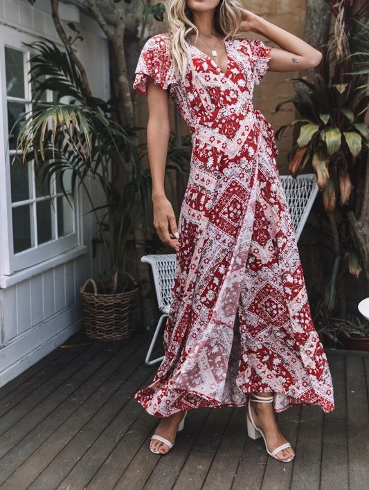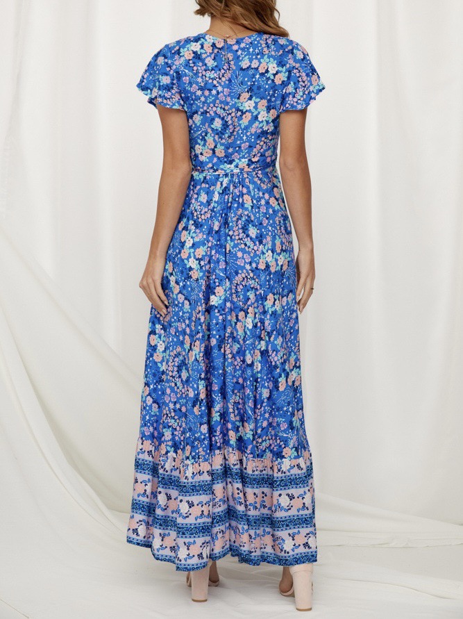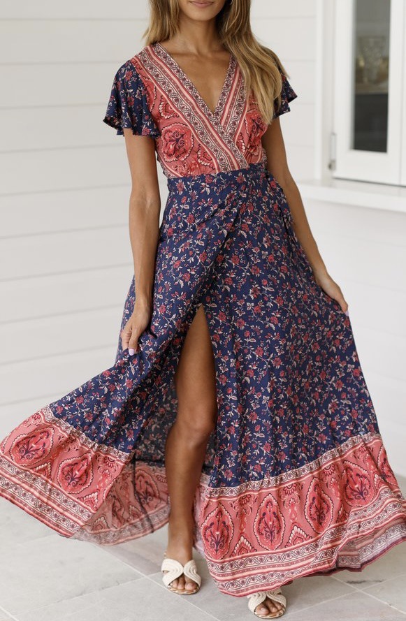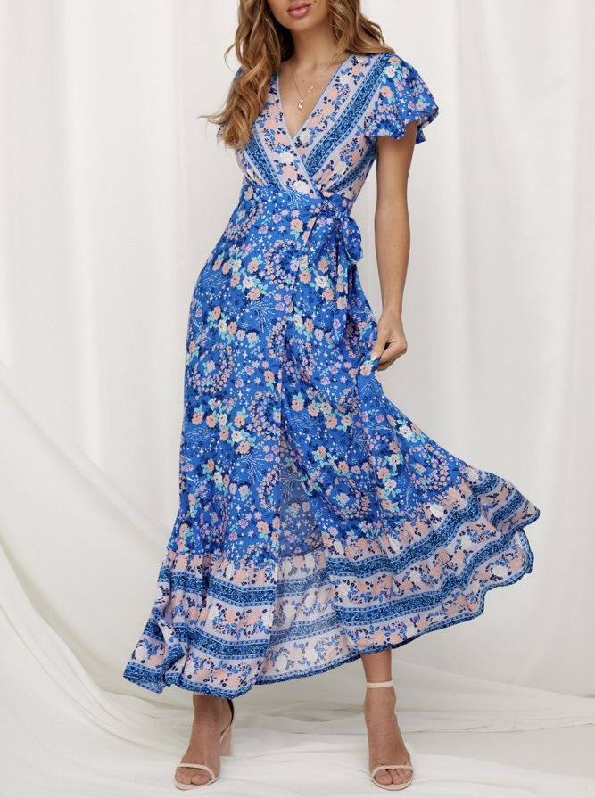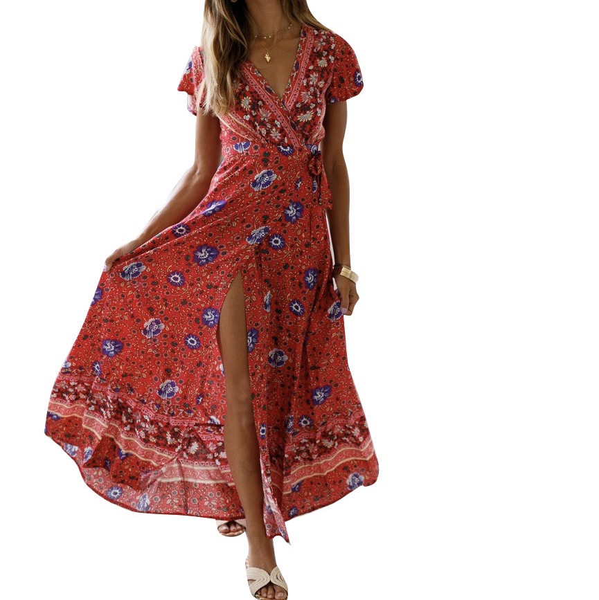 2023 크로스 보더 신제품 아마존 여름 캐주얼 뜨거운 휴가 인쇄 원피스 섹시한 긴 원피스 여성 의류스토어 가기