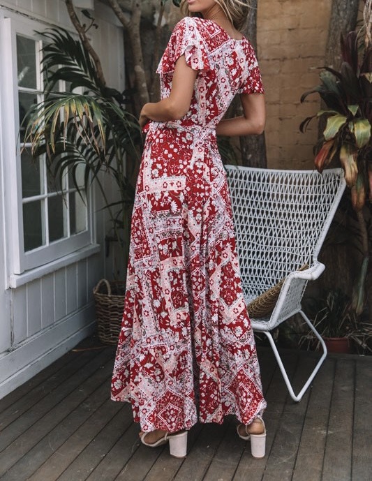 2023 크로스 보더 신제품 아마존 여름 캐주얼 뜨거운 휴가 인쇄 원피스 섹시한 긴 원피스 여성 의류