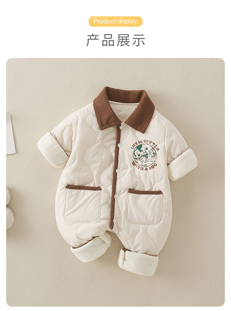 男宝宝2025秋冬季韩版新款夹棉加厚棉衣婴幼儿外穿卡通连体衣爬服