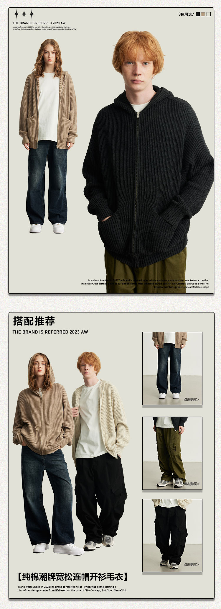 UNF 가을과 겨울 새로운 거리 패션 브랜드 캐주얼 지퍼 니트 가디건 남성과 여성을위한 아메리칸 느슨한 긴 소매 후드 스웨터스토어 가기